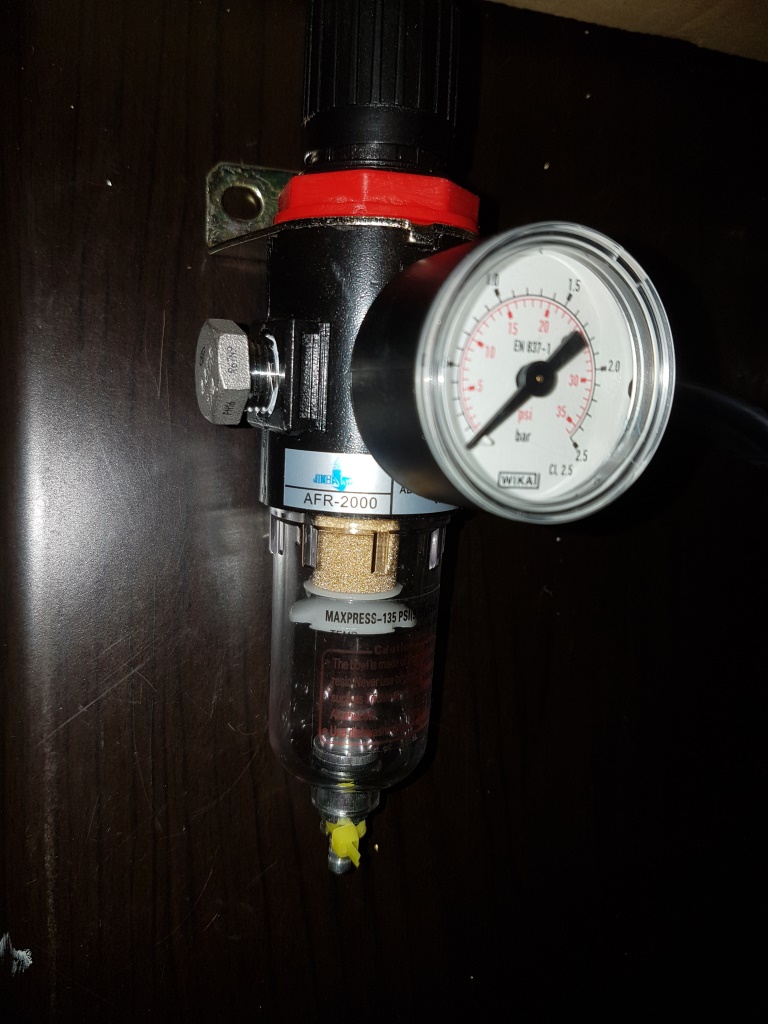 Alternativ hab ich mir nochmal einen Päzisionsdruckminderer von Festo geholt der nur bis 2,5 bar geht, der ist allerdings sehr massiv und schwer und ich befürchte, dass der dann zu sehr auf die NC Kupplung drückt (den hab ich bisher noch nicht zum Spunder umgebaut da mir ein paar Kleinteile ausgegangen sind)