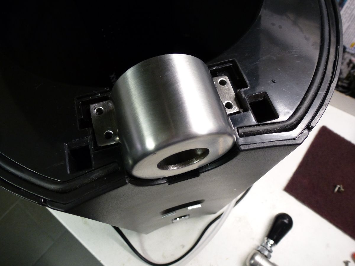 Im Deckel des Biermaxx musste ich doch noch einiges an Plastik wegfeilen, damit die CO2-Tülle und der nach aussen führende CO2-Schlauch