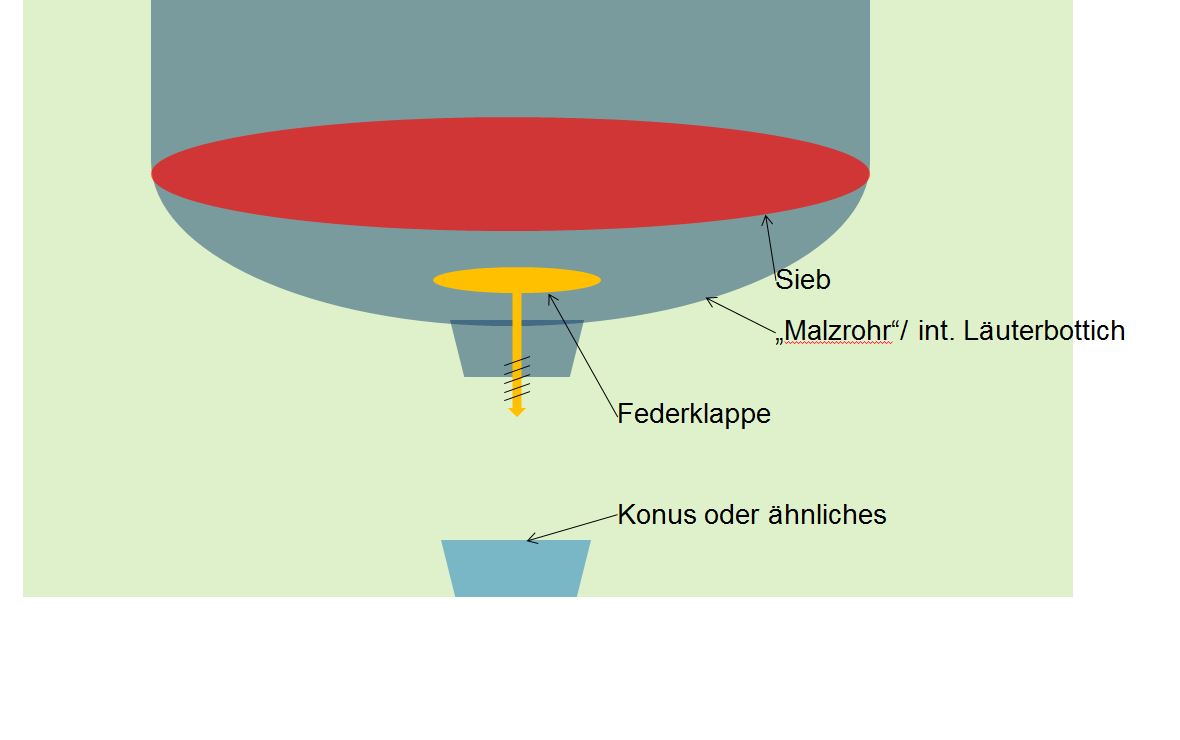 Um Läuterruhe halten zu können und auch so zu läutern wie es mehrfach beschrieben wurde. Zb mit Syphon, muss ich das Malzrohr geschlossen über die Würze heben können. Dazu habe ich mir gedacht das eine Federklappe diesen Job super erledigen könnte.