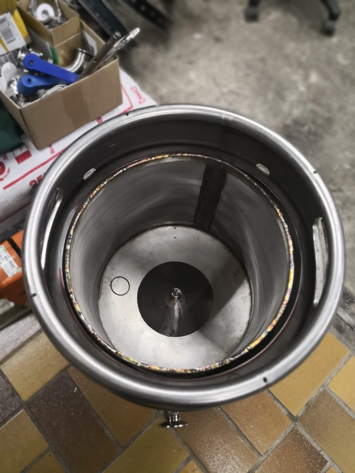 Deswegen habe ich kurz über dem Boden ein Prallblech montiert und hoffe damit das Absetzen in den Griff zu bekommen. Außerdem ist endlich der Filter gekommen. Somit wird das nächste mal mittels Plattenwärmetauscher und 100my Filter gekühlt und filtriert. Hinzu kam das der Rechner noch nicht ganz das gemacht hat was er sollte, zumindest nicht dauerhaft... Das sollte jetzt aber auch funktioniert.