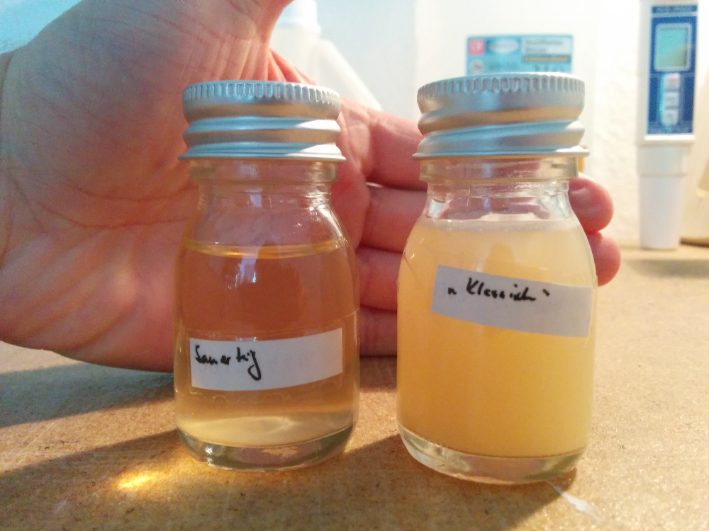 Heute habe ich zum ersten Mal mein neues pH-Meter eingesetzt und gleich die Sauerteig-Weisse vermessen: