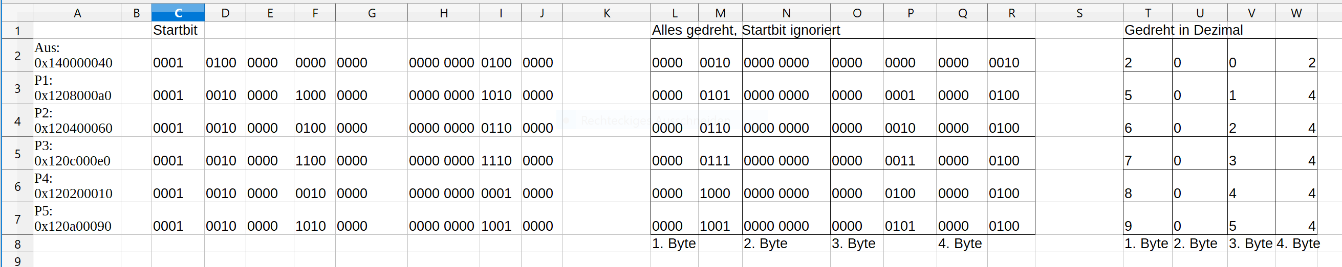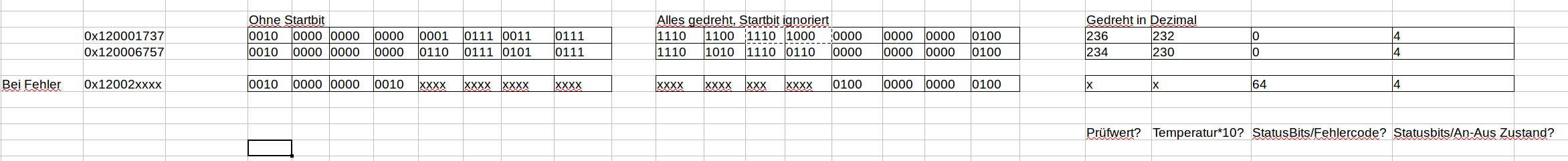 Schau dir mal den Screenshot an, wenn wir die Bitrichtung bei der Übertragung drehen, dann sind da Zahlen zu erkennen, die scheinen doch Sinn zu machen? ;-)