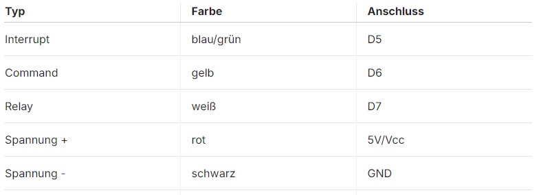 im Verlauf des Threads ist irgendwie untergegangen, welche Adern welches Signal führen und wie genau das Relais angesteuert wird. Kann das vielleicht jemand nochmal reinschreiben?