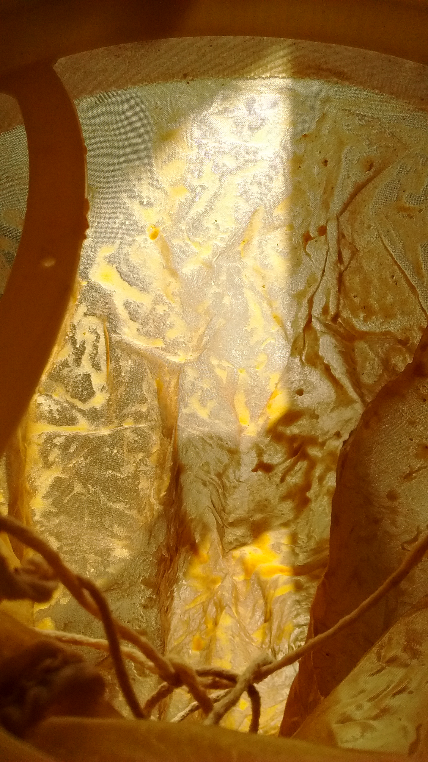 Zum Glück hatte ich das Läuterblech, was hier niemand haben wollte und einen Maischesack. :thumbsup Also umgeschöpft, Läuterblech auf die Hexe und den Maischesack rein. Dann ging es. Nachgüsse drüber und gut. Schließlich alles durch einen Momofilamentfilter, der ratzfatz zugesetzt war.