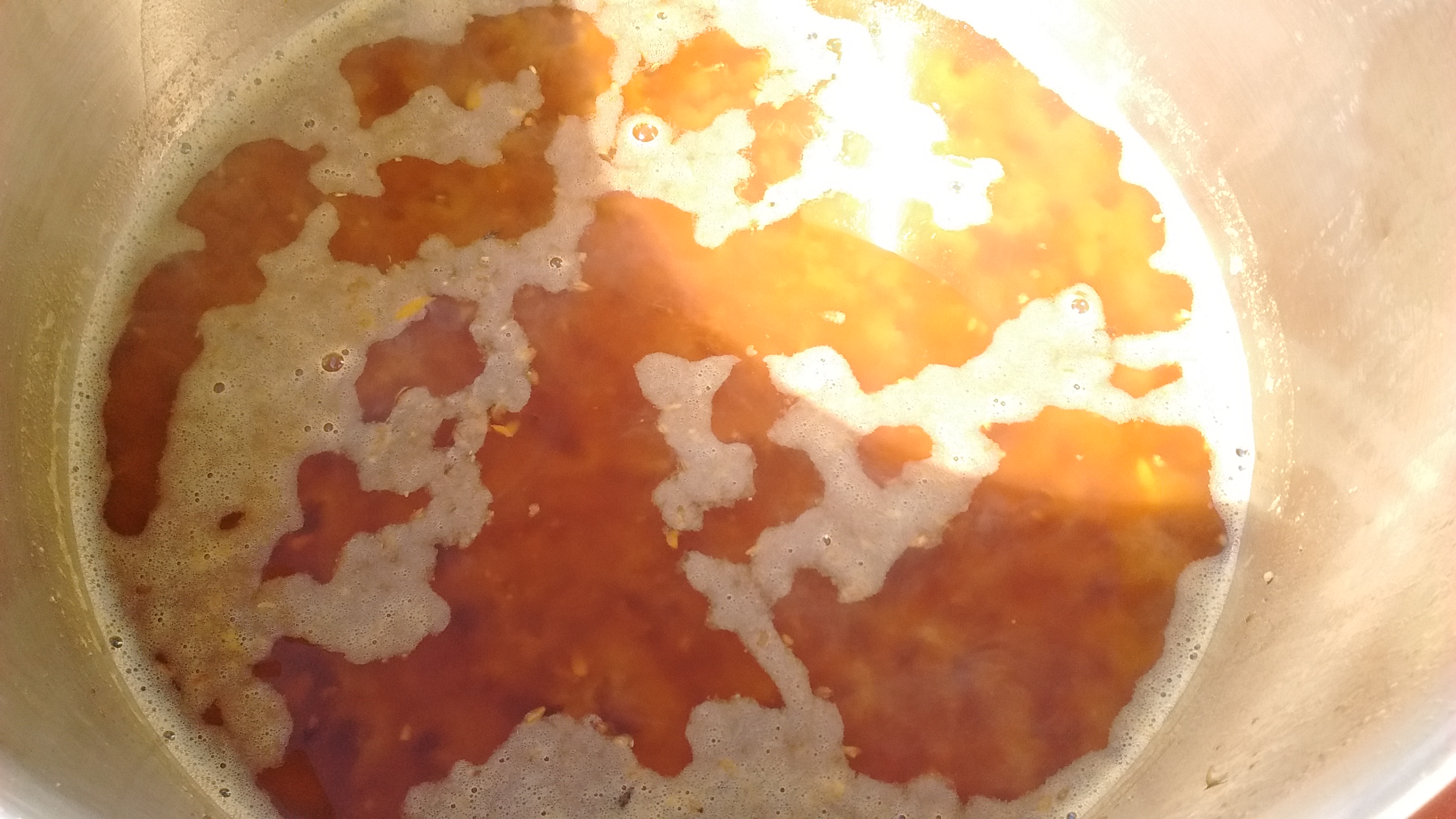Den Honig habe ich in heiße Würze eingerührt, damit er gut in den kochenden Sud eingerührt werden kann.