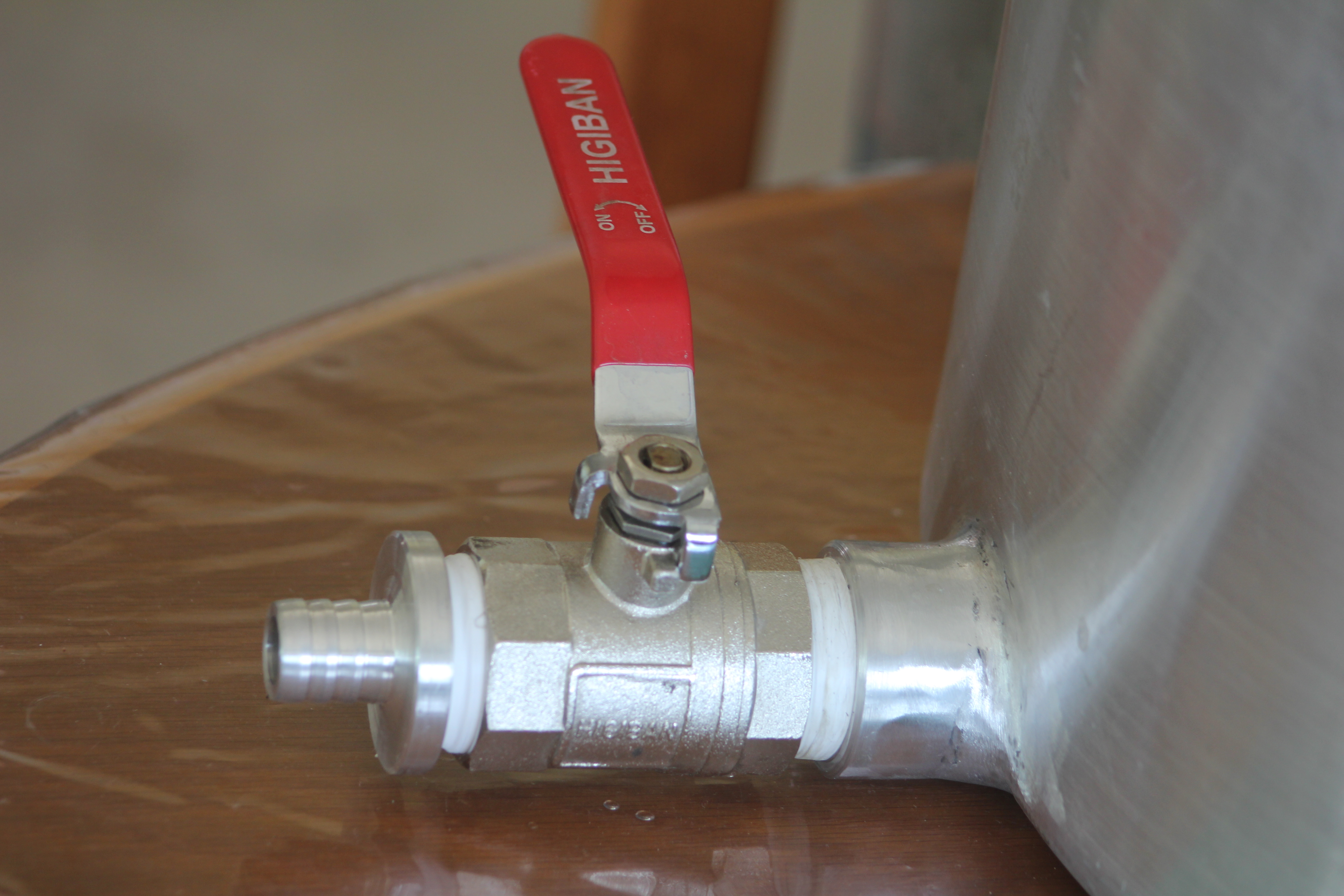 Nach einem Umbau zum Kombitopf der Ausgang der Läuterwürze 3/4". Vorher kam hier die Maische zum Läutern raus 1 1/4"