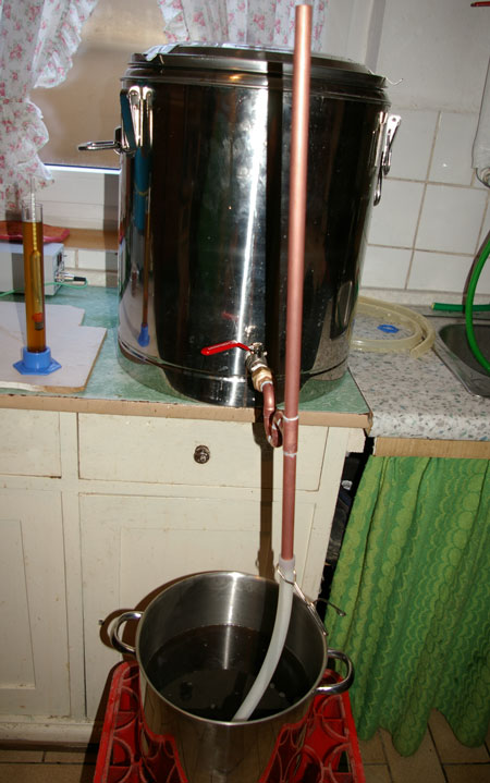 Würzekühlen mit einer Kupfer-Kühlspirale...