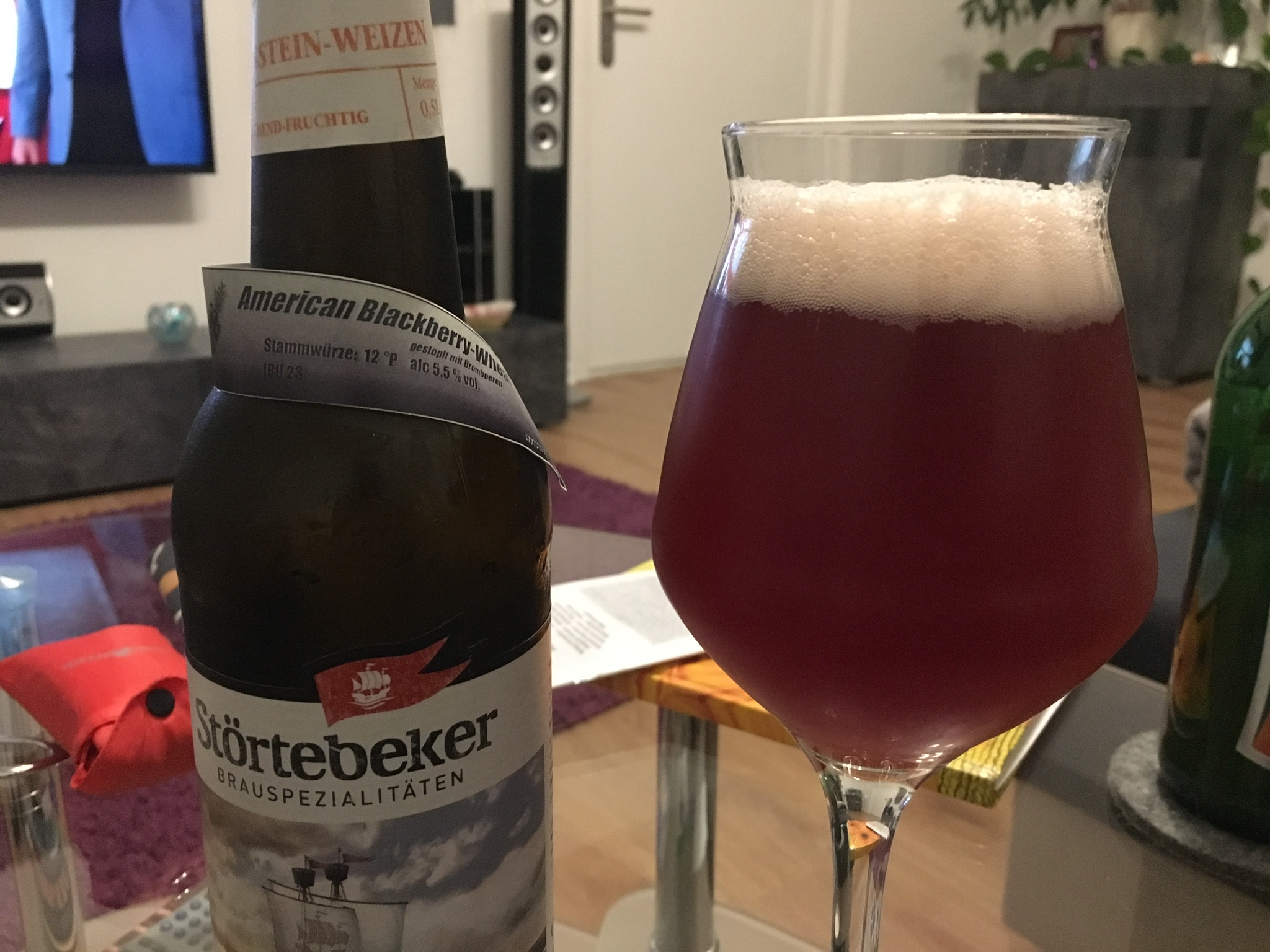 Gestopft mit Brombeeren. Die Brombeeren merkt man leider garnicht lediglich eine leichte Beerennote ist zu merken. Schmecken tut es trotzdem... :Drink