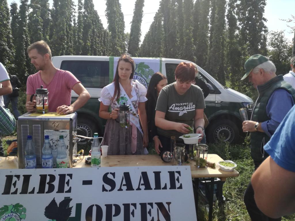am 15. September hatte der Elbe-Saale Hopfenpflanzerverband zu einer Marketingveranstaltung mit Eventcharakter geladen. Primär war die teilweise gesponserte Veranstaltung natürlich an Profibrauer gerichtet aber weil der Verband der Meinung war/ist, der Hobby- und Craftbierbrauer- Bewegung viel zu verdanken, waren auch Hobbybrauer und Biersommeliers dazu eingeladen. Für einen pauschalen Obolus von 35 € pro Person für das Tagesprogramm konnten sich interessierte Hobbybrauer anmelden und 21 Personen (HB + Begleitungen) haben das getan. Insgesamt waren wir 52 Leute, recht paritätisch gemischt aus Profis, Hobbybrauern und Sommeliers.