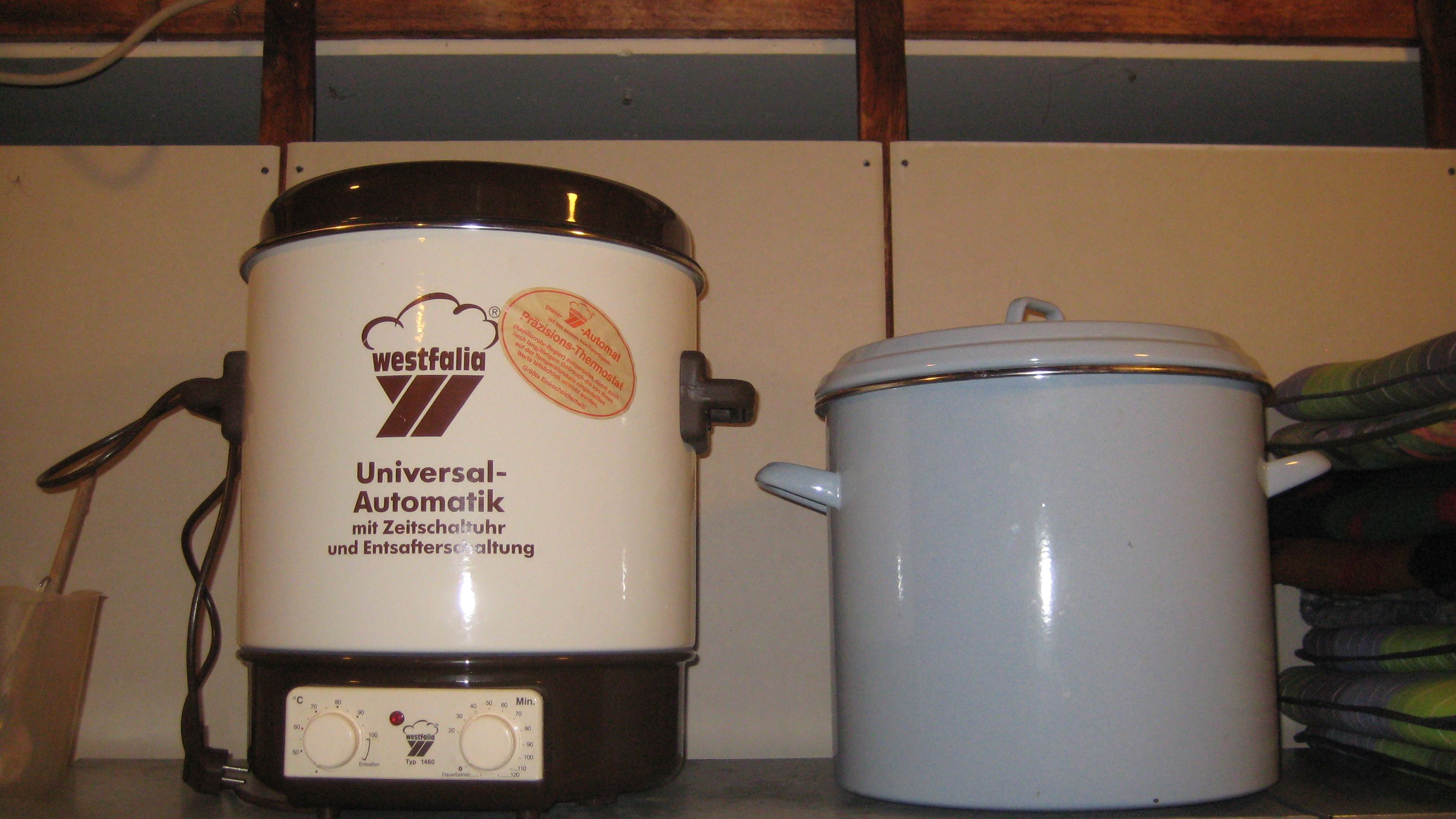 Gefunden habe ich einen Emaille-Einkocher 29,5 l und einen Emaille-Topf 27 l. Für Nachgüsse habe ich noch n Edelstahl Topf 15 l.