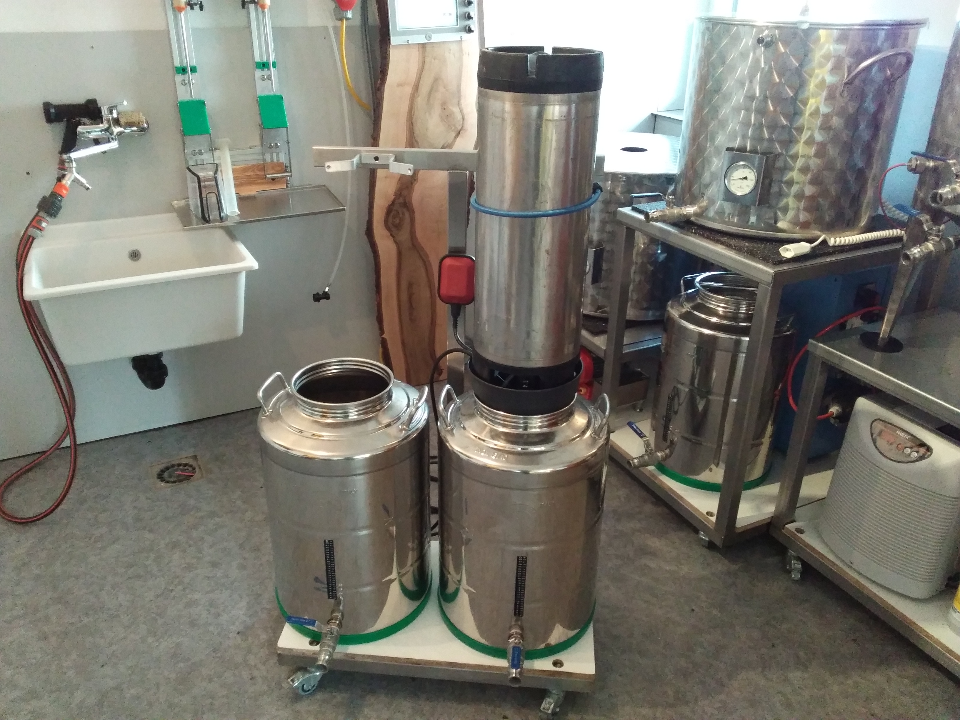 So habe ich eine Maschien mit der ich sowohl Flaschen als auch KEG's waschen kann.