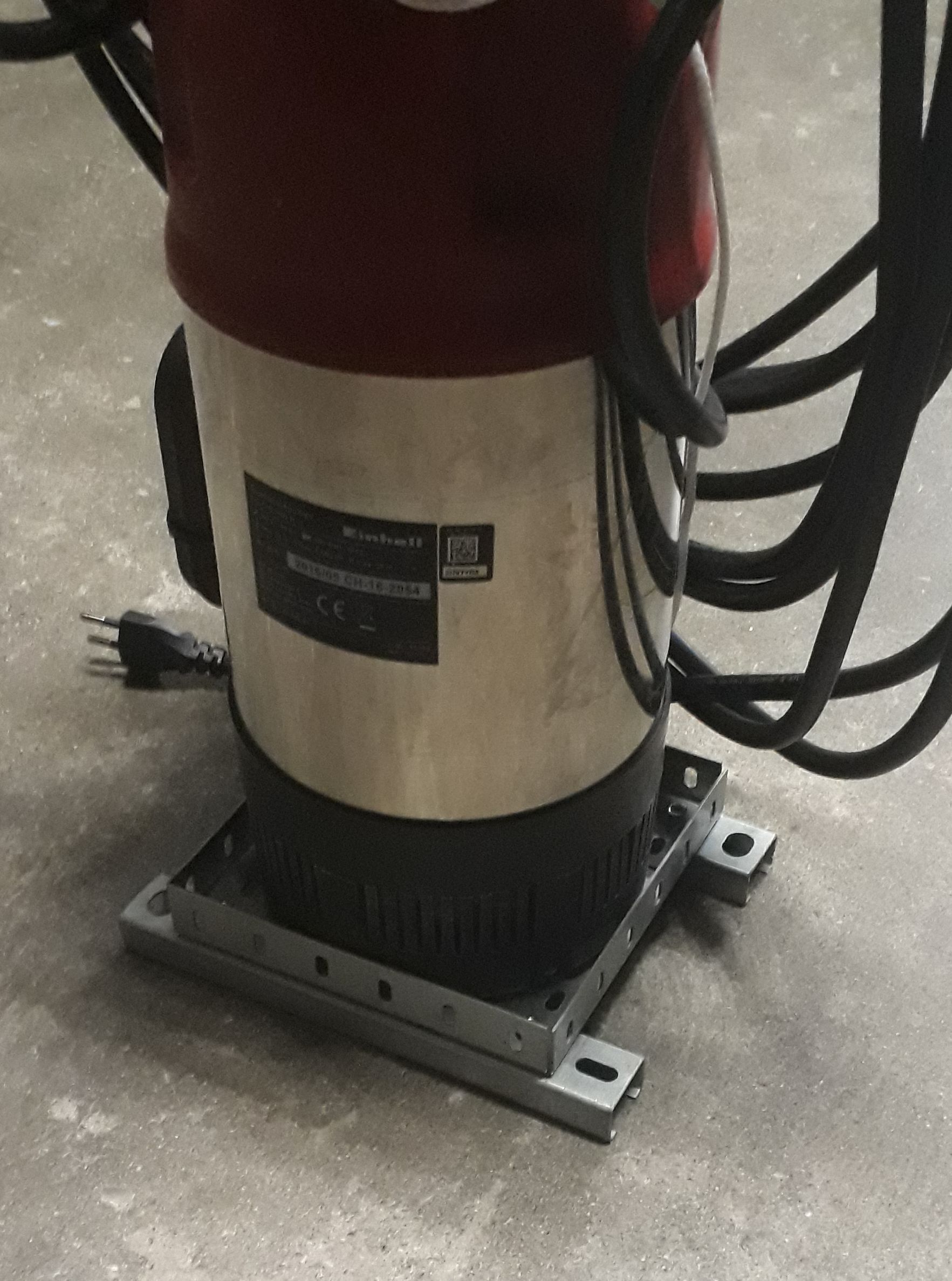 Wie oben schon geschrieben habe ich mir einen Unterbau für die Pumpe gebastelt. Er besteht aus 4 L-Profilen die auf zwei Längsträgergeschraubt wurden: