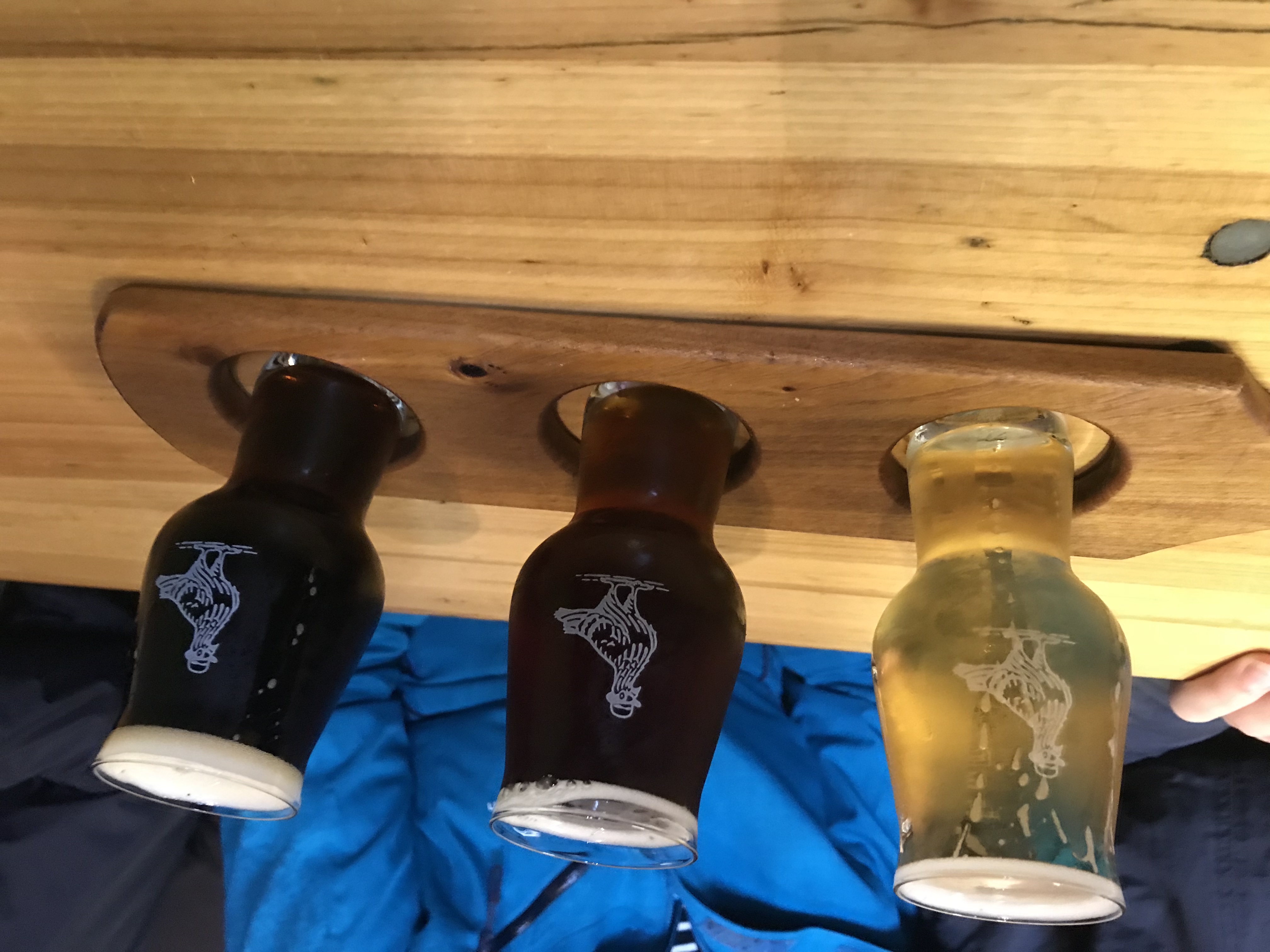 Taproom und einige Biere mit deutschen Namen. Hier gab es Cream Ale, Rauchbier und Schwarz im netten Probierträger. Das Cream hat mich nicht abgeholt aber die anderen beiden Biere waren echt super.