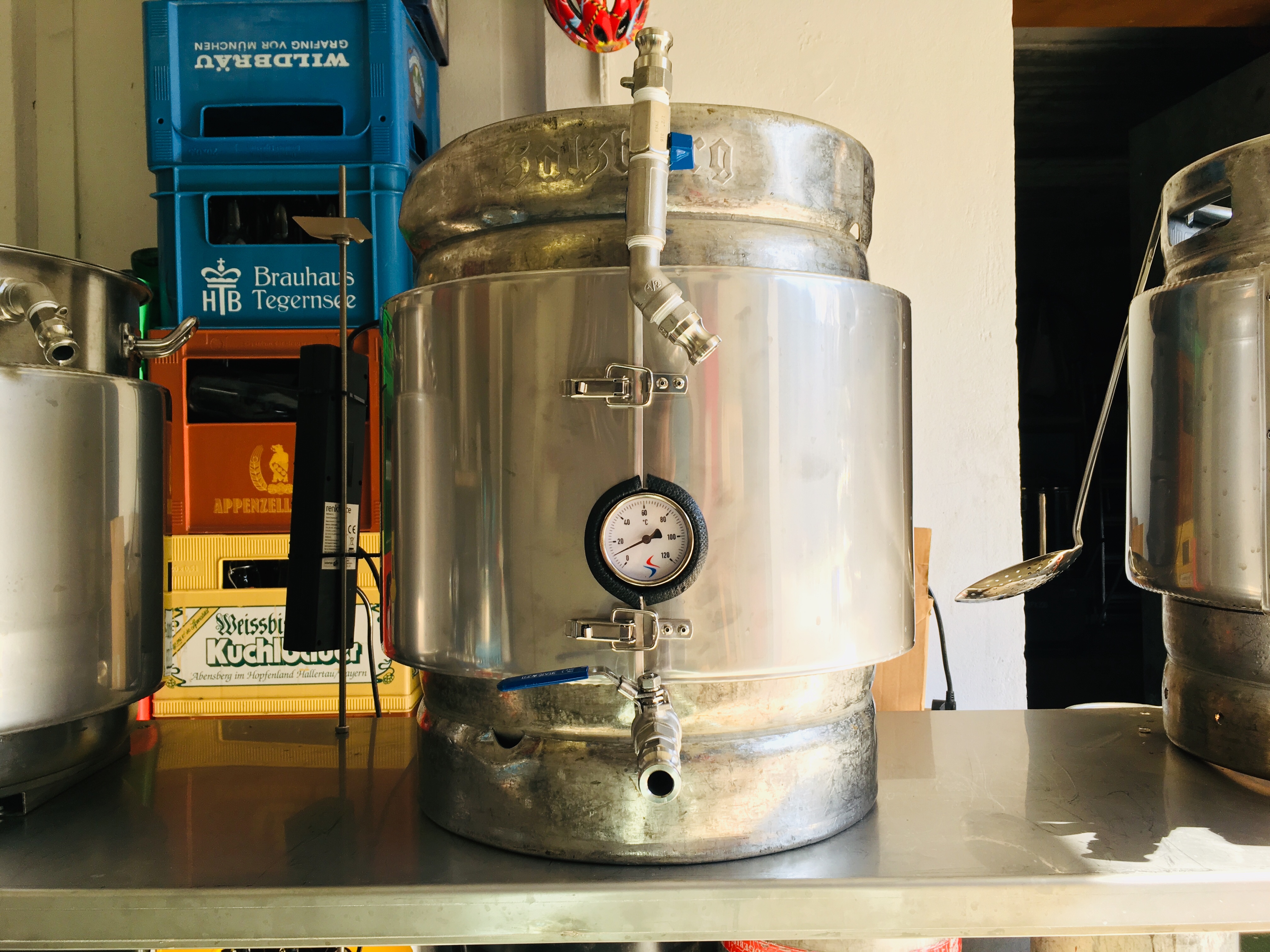Es wurde der Thermoport 38ltr ersetzt. Ich wollte unbedingt den Ausstoß etwas erhöhen. Also wurde als neuer Maische- bzw. Läuterbottich ein ausgemustertes 50er KEG umgebaut.