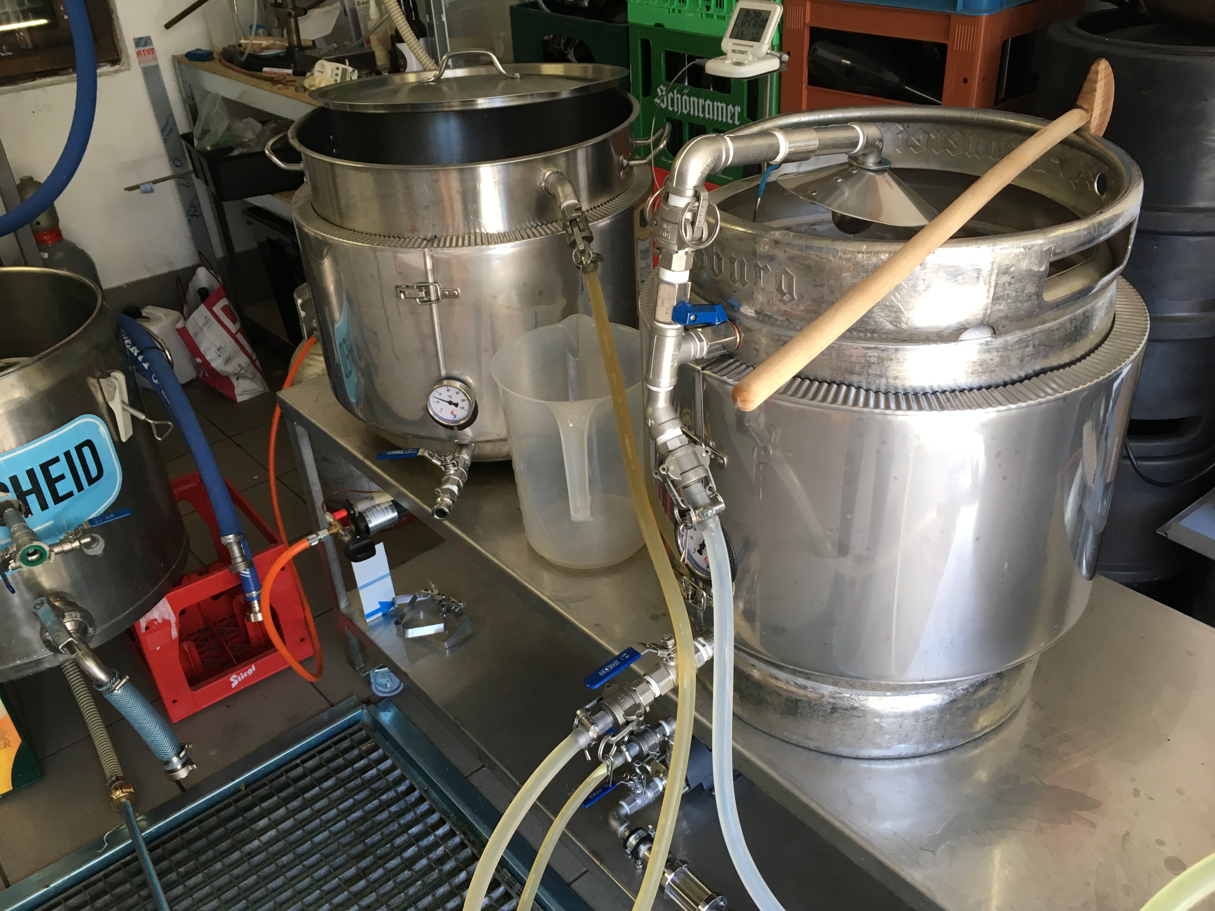 Hätte mir ehrlich gesagt nicht gedacht, dass da so viel Rohr-, Winkel-Hardware und Hähne dafür nötig sind. Aber vom System her ist das auf alle Fälle eine richtig coole Sache. Habe auch gleich zum Beginn meiner Hobbybrauer-Karriere HERMS/RIMS Systeme auf Youtube gesehen und mir einerseits gedacht: coole Sache, aber andererseits: Sowas würde ich nie hinbekommen. Aber ich kann mir vorstellen dass es von der Bastelei auch richtig Spaß machen kann, besonders wenn es zum Schluss auch reibungslos funktioniert :-)