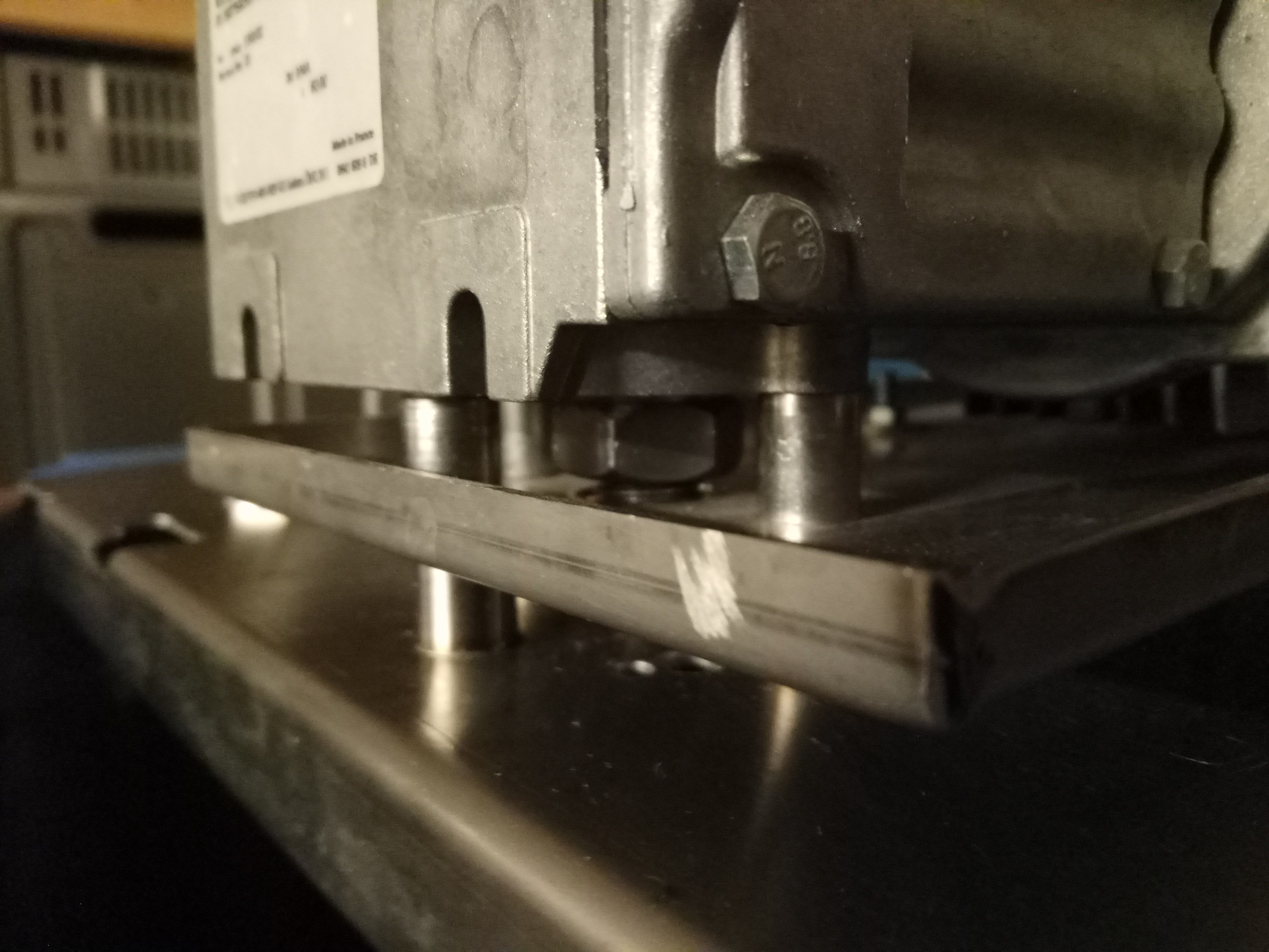 Die Gewindestange ist nur oben und unten am Getriebe mit einer Mutter geklemmt. Das Wärmeprallblech ist damit der Motor nicht unnötig heiß wird,