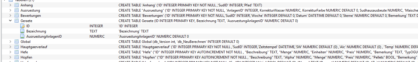 Nachdem ich dann v1.4.4.2 installiert habe (ebenfalls natürlich die Windows Version), hat die Datenbank folgende Datenstruktur: