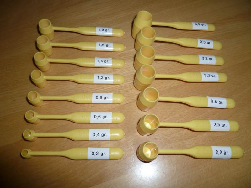 Bei der Verwendung der Dosierhilfe spielen meines Erachtens Korngröße und Schüttdichte sicher eine Rolle.