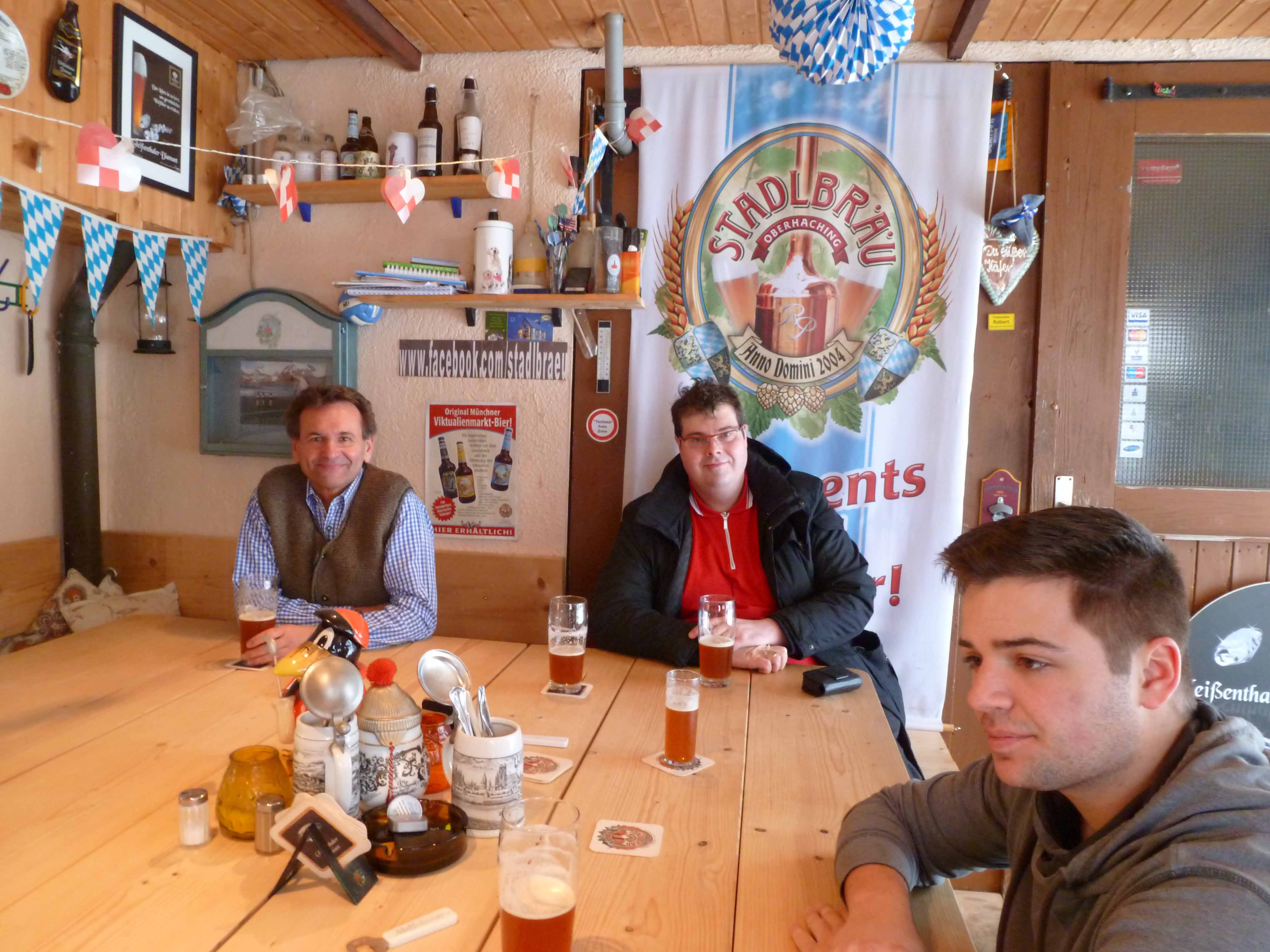 letzten Samstag am 07.02.2015 war es soweit, das Intensivbrauseminar beim Stadlbräu in Oberhaching (http://www.biervonmir.com). Es wurde alles sehr kurzweilig und gut verständlich erklärt. Endlich verstehe ich einmal theoretisch und praktisch, wie richtig gutes Bier gebraut wird. Begleitend gab es dazu ein Seminarunterlagenheft. Viele der Anleitungen darin waren für die große selbstentwickelte Anlage des Brauereiinhabers geschrieben worden. Aber ich habe mir noch vieles mitgeschrieben und per Foto dokumentiert, um den BM 50 so richtig zu verstehen. Der Braumeister Seppi war als Seminarleiter echt top. Dementsprechend war die ganze Truppe bestens gelaunt. Natürlich trug dazu auch etwas das unlimitierte Bier zum Selberzapfen für die Seminarteilnehmer bei. Mein Gott, war dieses Bier der Sorte "Red" herrlich. Da verschwanden dann schon einige Biere in meiner frohgestimmten Gurgel. Das Bier war so gut, dass ich das Auto lieber nach dem Braukurs stehen ließ und im Hotel Hachinger Hof übernachtete. Da ich das Spitzenbier in meinem Magen nicht mit Industriebier beleidigen wollte, trank ich dann lieber zum Abendessen einen Dornfelder.