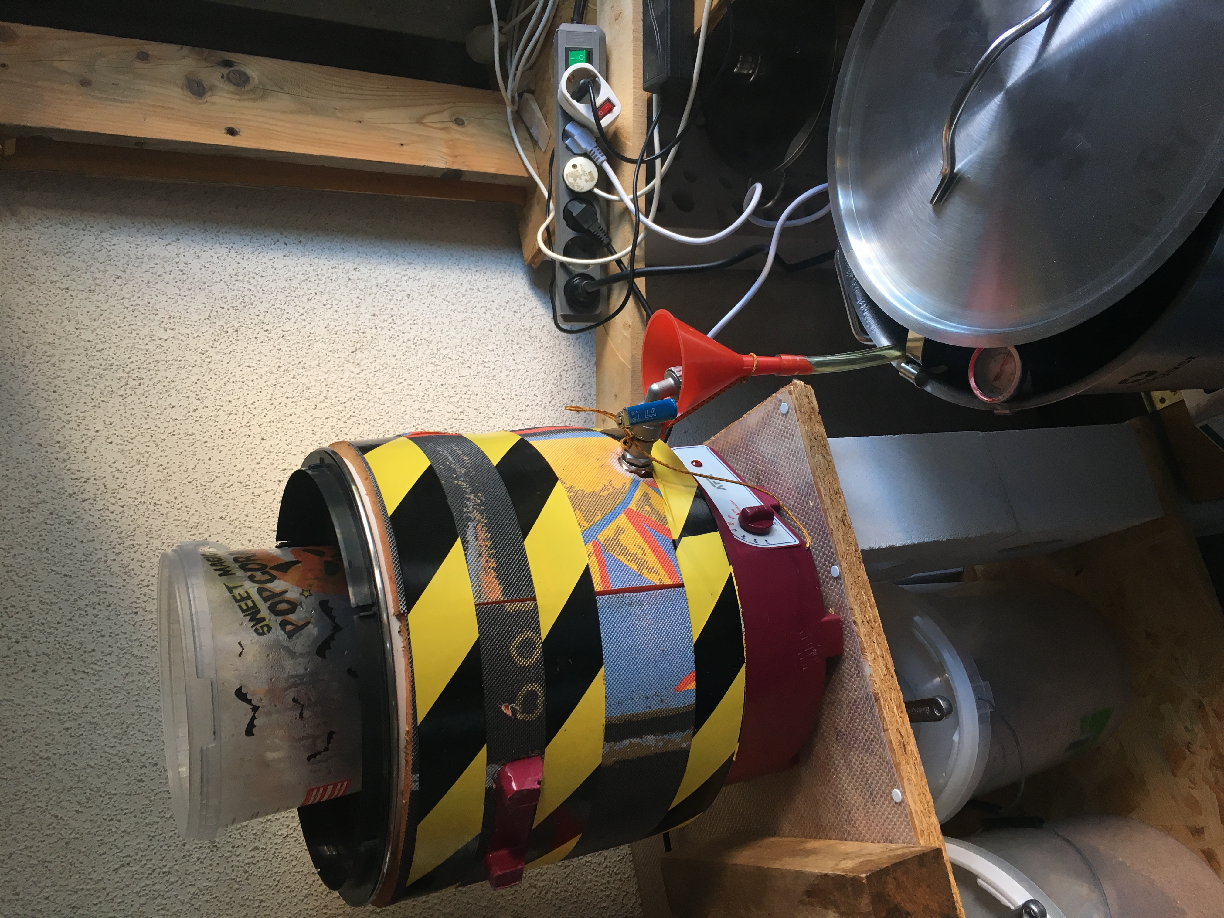 Danke, da bin ich auch sehr stolz drauf. Wer sonst hat schon einen rosa Maischebottich mit schwarz-gelben Streifen (die übrigens nix mit dem BVB zu tun haben sondern höchstens mit Amberg http://www.kommunalflaggen.eu/index.php?title=Amberg)?P.S.: Du hast auf jeden Fall die bunteste Anlage der Szene![]()