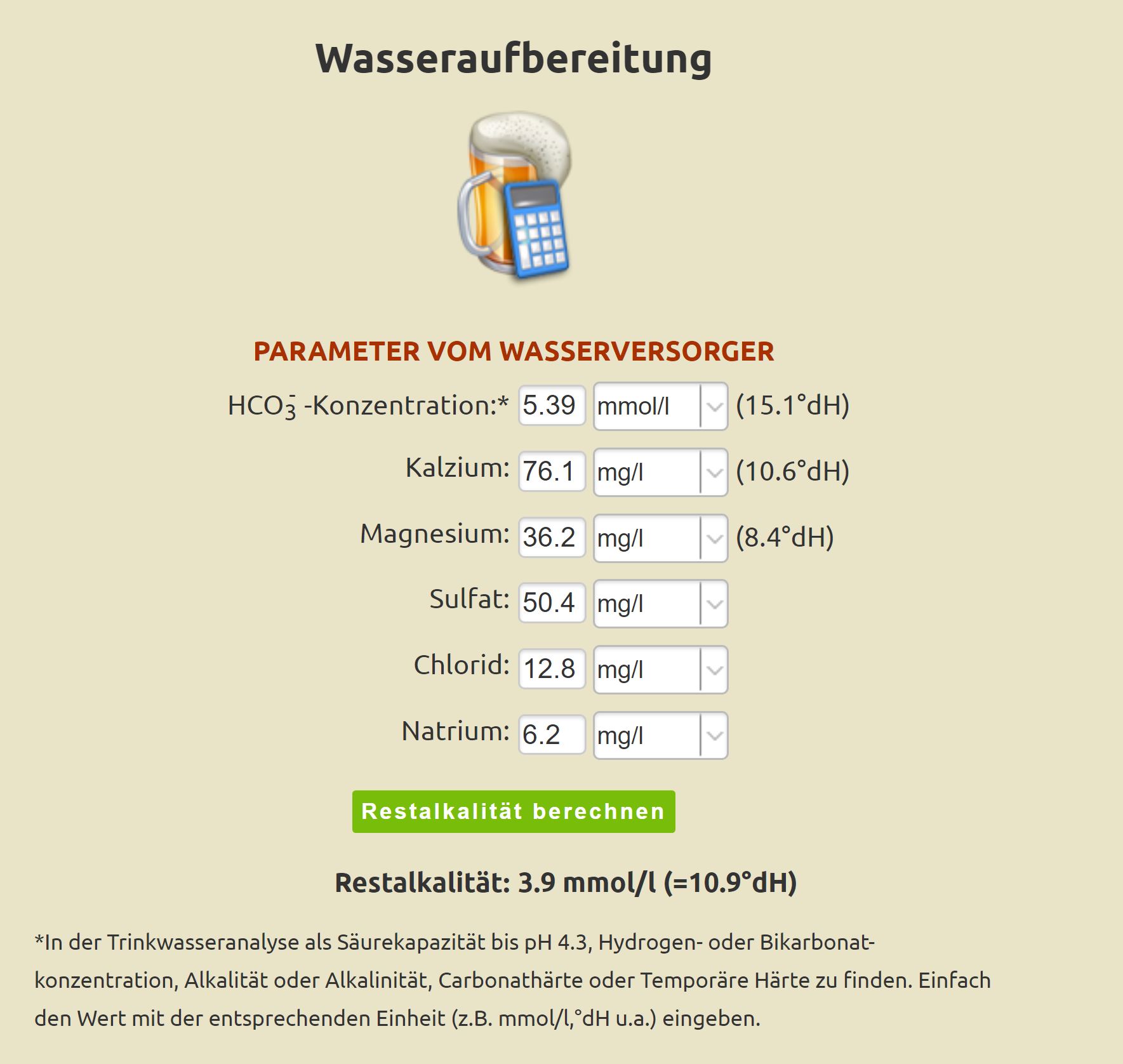 Die Wasserwerte von den Stadtwerken, mein Brun Water Screenshot und ein Screenshot von dem Wasserrechner hier aus dem Forum sind im Anhang.