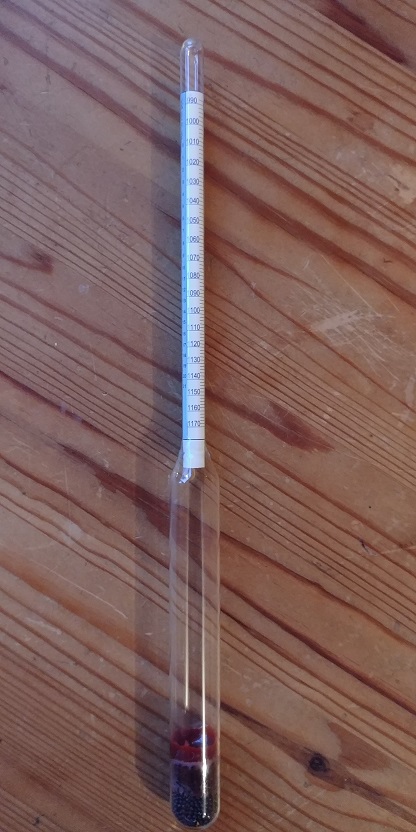 Meine Werte von gestern: 140g/l Zucker, 7,2 vol. % pot. 1054 bei der Skala ohne Bezeichnung.
