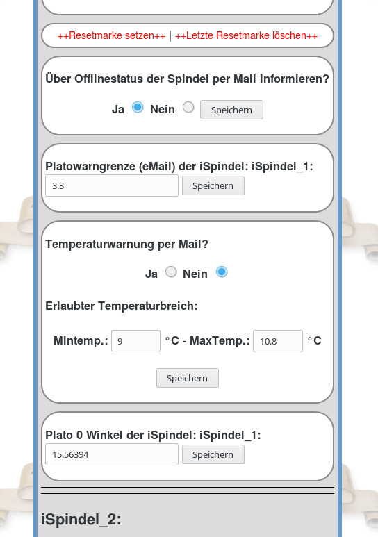 Ich habe das script mal so umgeschrieben, dass dort im Datensatz mit dem Reset in die anderen Felder der Wert '0' geschrieben wird. Für den Namen der Spindel wird noch die entsprechende letzte ID in der DB gesucht und dann in das Feld übertragen.