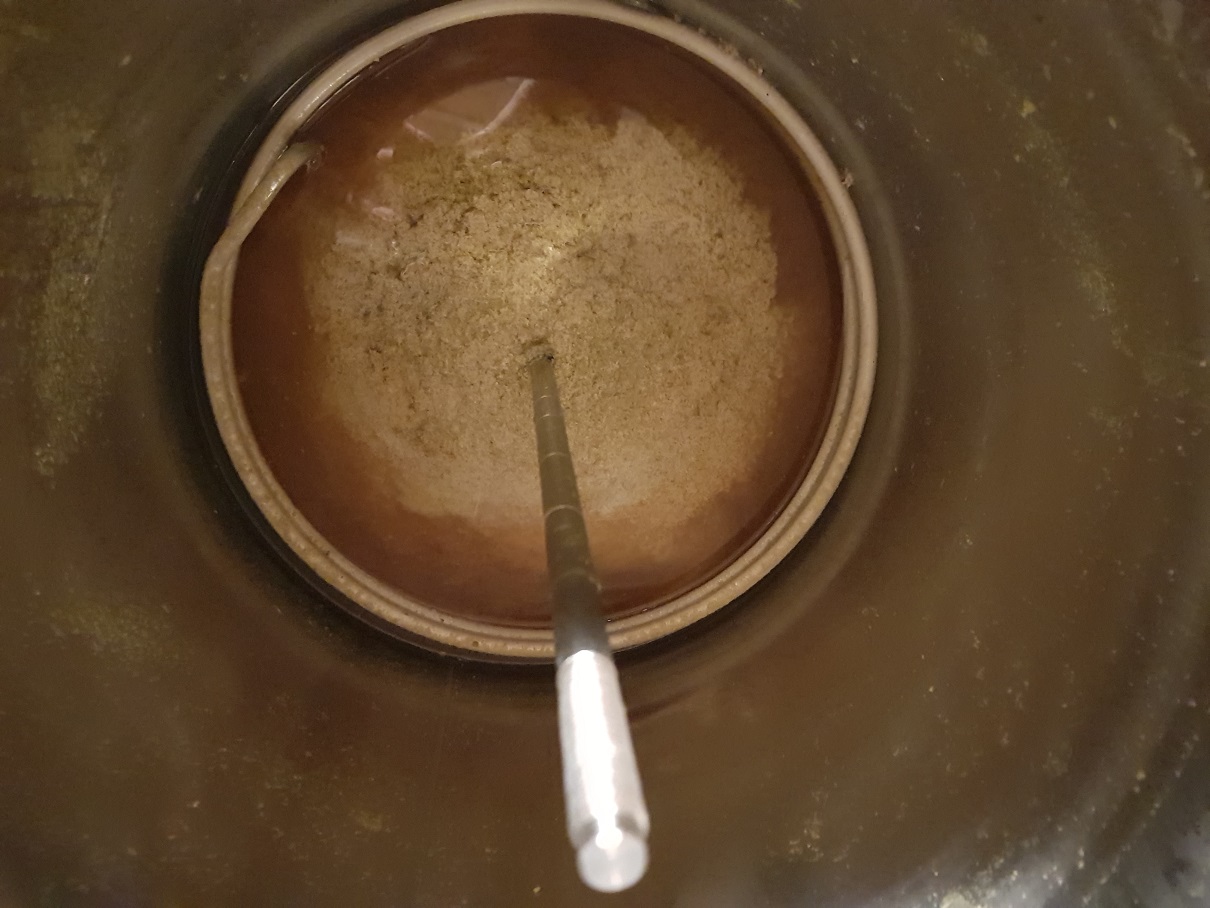 Der Schmodder im Bodenbereich ist hauptsächlich Whirlpoolhopfen, den will ich nicht im Filter zugeben um möglichst viele Aromen rauszuholen.