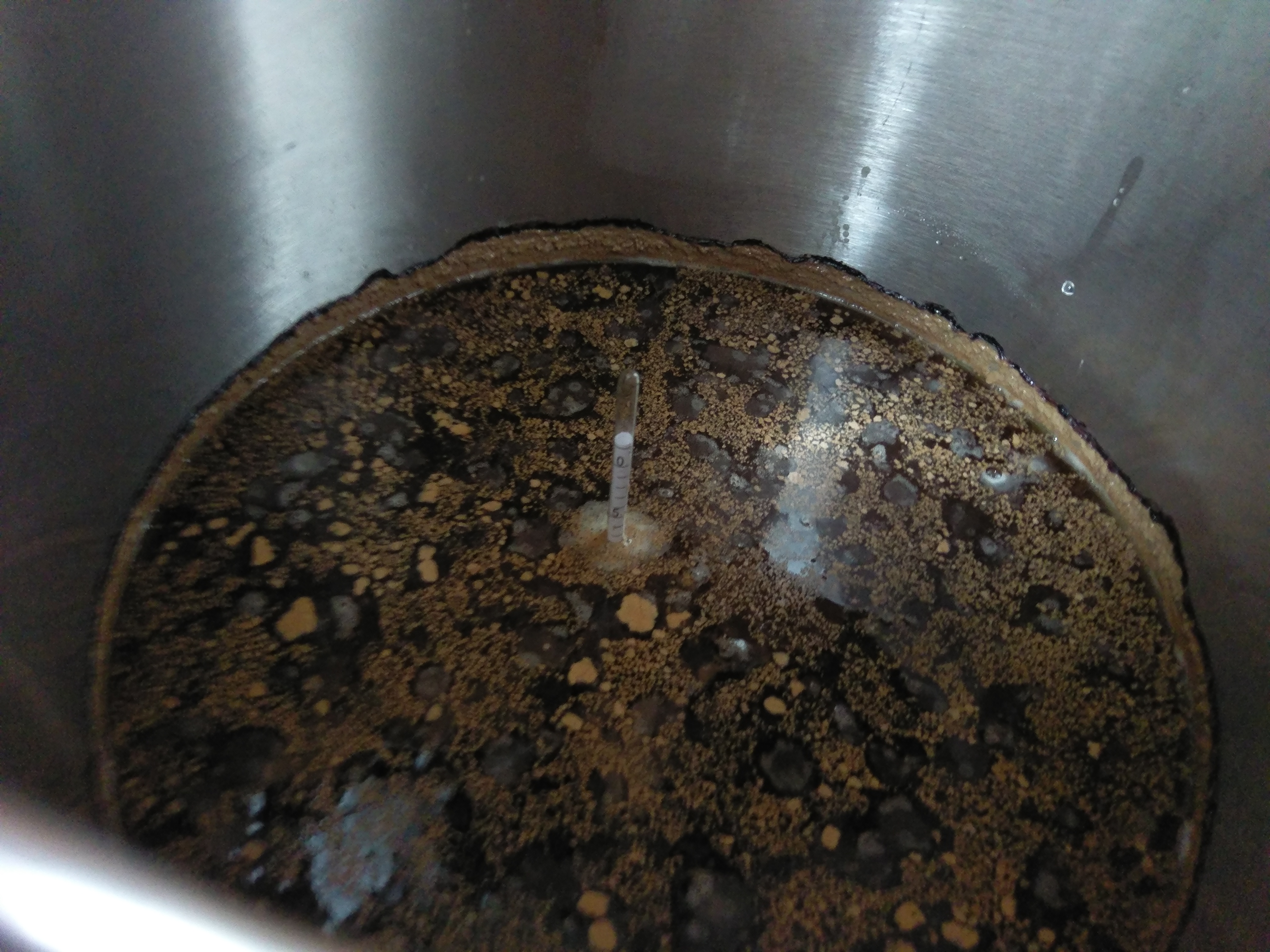 Ich hatte die Spindel erst unmittelbar vor dem Ablesen (und Foto machen) in den Gärbehälter gegeben, von daher können auftriebgebende Kohlensäurebläschen ausgeschlossen werden, oder? Vor dem nächsten ablesen (übermorgen?) werde ich sie dann entsprechend andrehen.