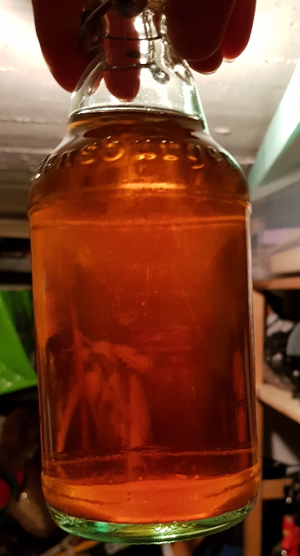 Zwei Wochen reift das Ale jetzt bei ~18 °C in unserem Keller. Heute soll es dann in den Kühlschrank zum Coldcrash. Eigentlich hätte ich es gern am Samstag angestochen, aber ich werde ihm noch etwas mehr Ruhe gönnen, denke ich. Oder ich mache dann ein Fläschchen zum Probieren auf... Mal sehen. :Grübel