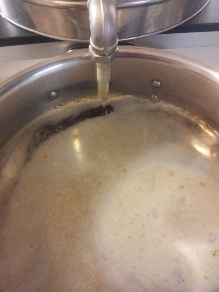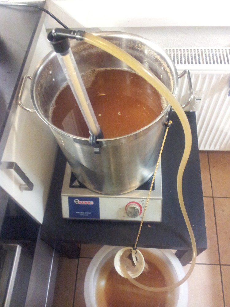 Der Nachguss wird einfach im Suppentopf auf etwas über 70°C aufgeheizt...