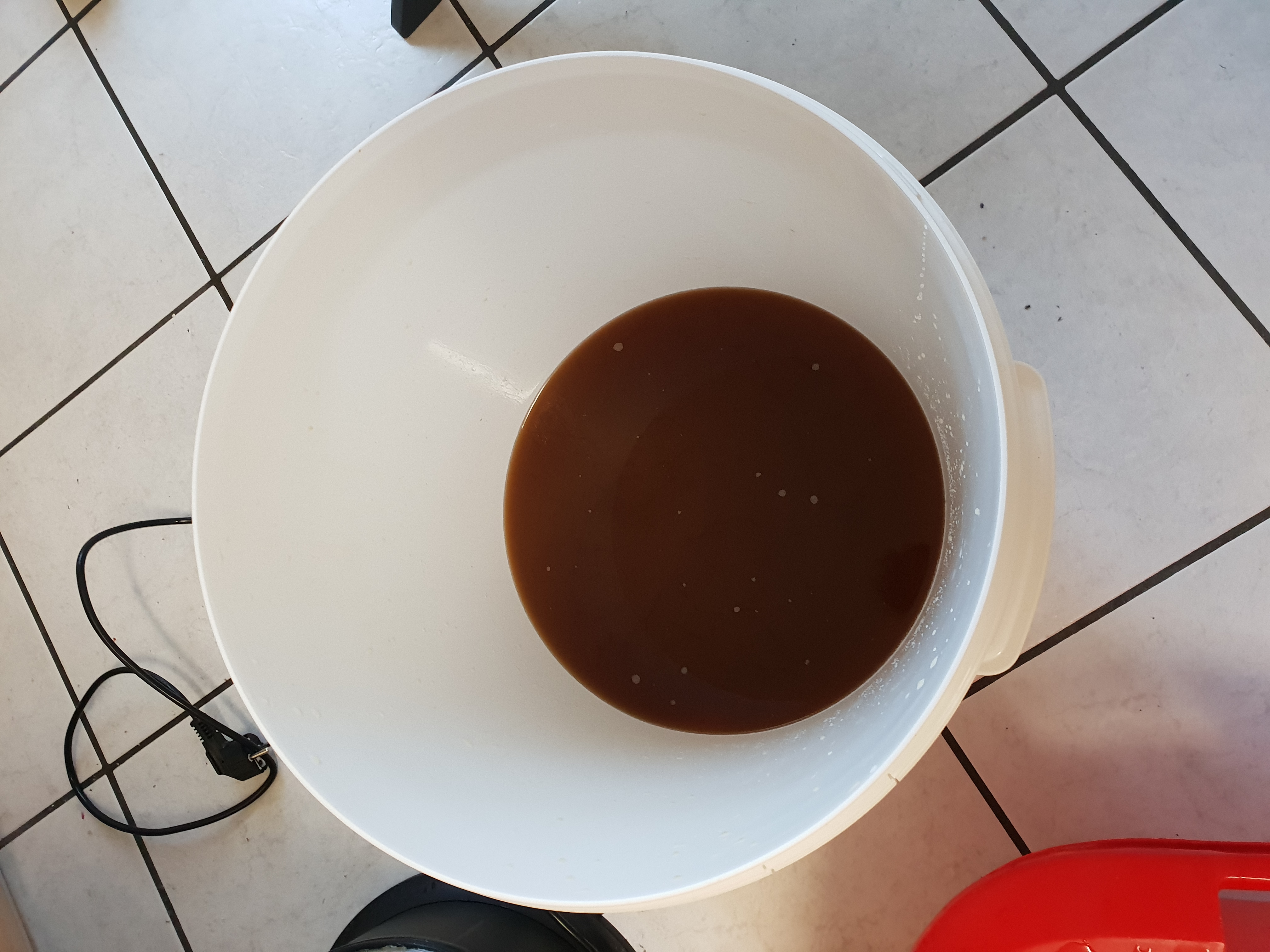 Jetzt habe ich den Treber mal mit Wasser im Sieb vom Mehr befreit und der GF pumpt das jetzt nochmal duch den gewaschenen Treber. Das sieht besser aus, zumal durch den Treber jetzt auch wieder was durch läuft. Mal sehen was passiert.