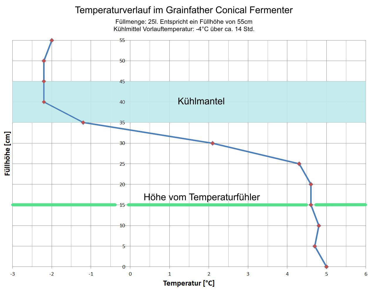 - Stell die Kühlmitteltemperatur nicht unter -4°C, sonst gefriert dir das Bier im Bereich des Kühlmantels.