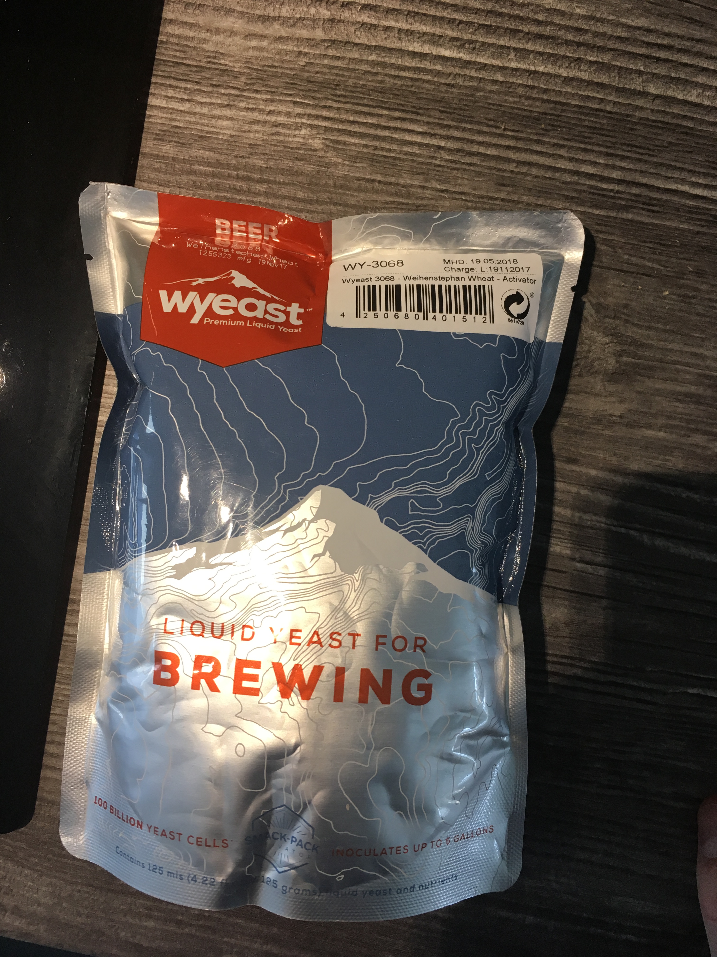 Bei der Hefe war das MHD schon übschritten (05/18), aber diese war die ganze Zeit im Kühlschrank. Es hat auch etwa 3 Tage gedauert, bis die Packung so schön aufgebläht war. Deshalb stand der Brautag auch lange auf der Kippe.
