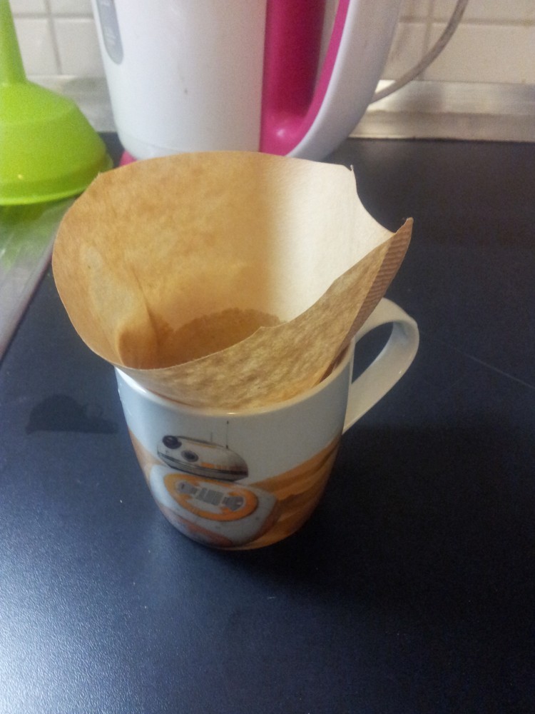Der Nachguss wird einfach im Suppentopf auf etwas über 70°C aufgeheizt...