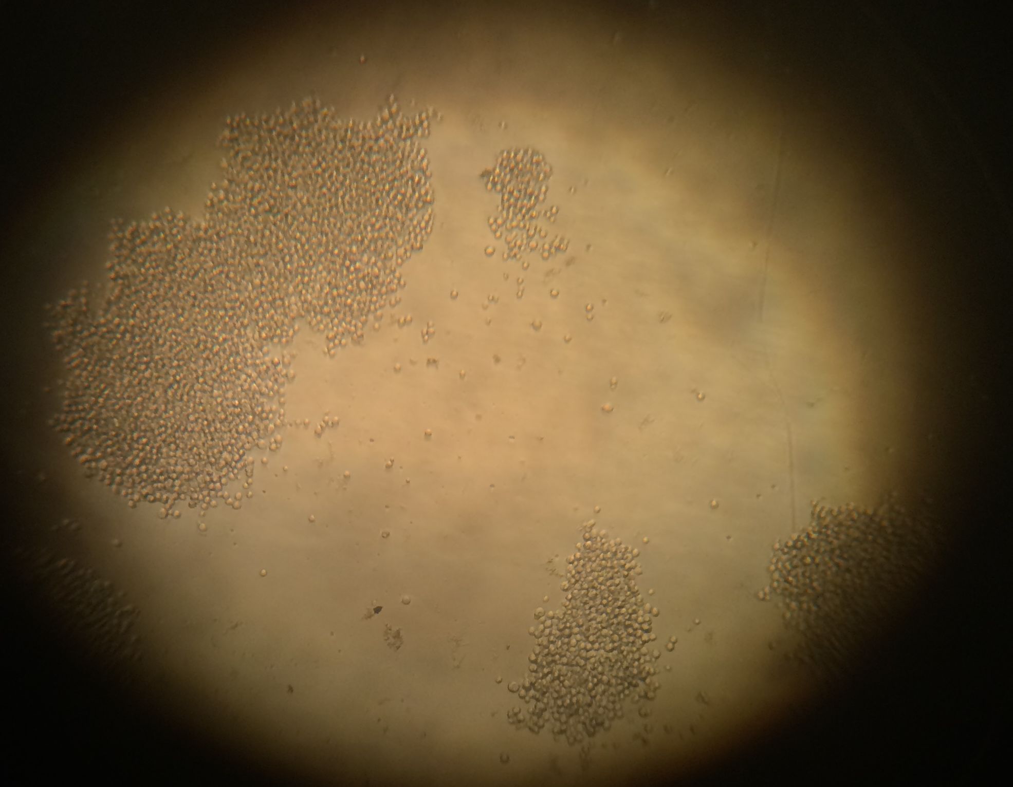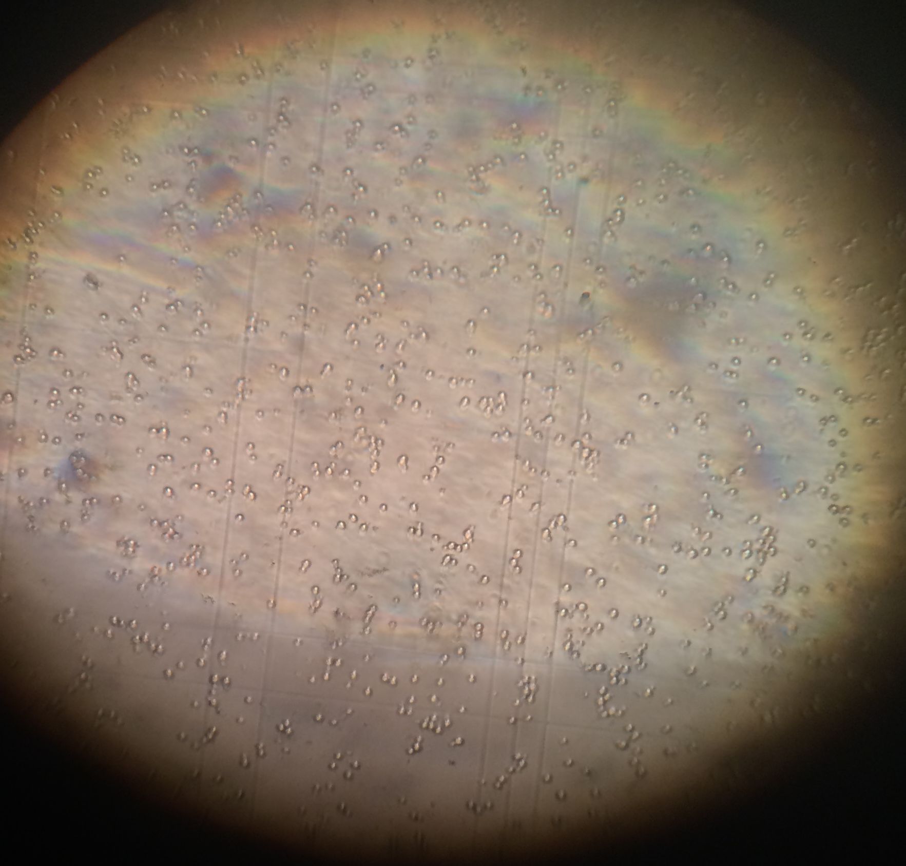 Das Zählen hat auch nicht funktioniert, wenn Foto 3 die 1:10 verdünnte Probe enthält. Ohne groß nachzuzählen sind dort 80-120 Zellen pro Kleinquadrat zu sehen. Definitiv wesentlich mehr als 30. Die Zelldichte ist auch zu hoch, um komfortabel zu zählen. Das kannst du nochmal 1:10 weiter verdünnen. 5 - max. 50 Zellen geht für mein Empfinden ganz gut.