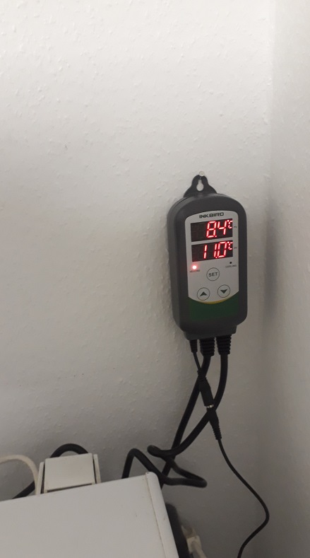 genau, den Inkbird verwende ich als Steuerung. Funktioniert einwandfrei, habe konstant 10°C. Echt ein feines Gerät :-). Momentan bei 9,8brix, nach Terillformel 48% sEVG.