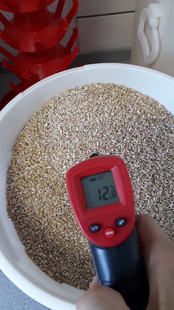 .... die Malztemperatur in meiner Brauküche wegen der Einmaischtemperatur kontrolliert und berechnet...