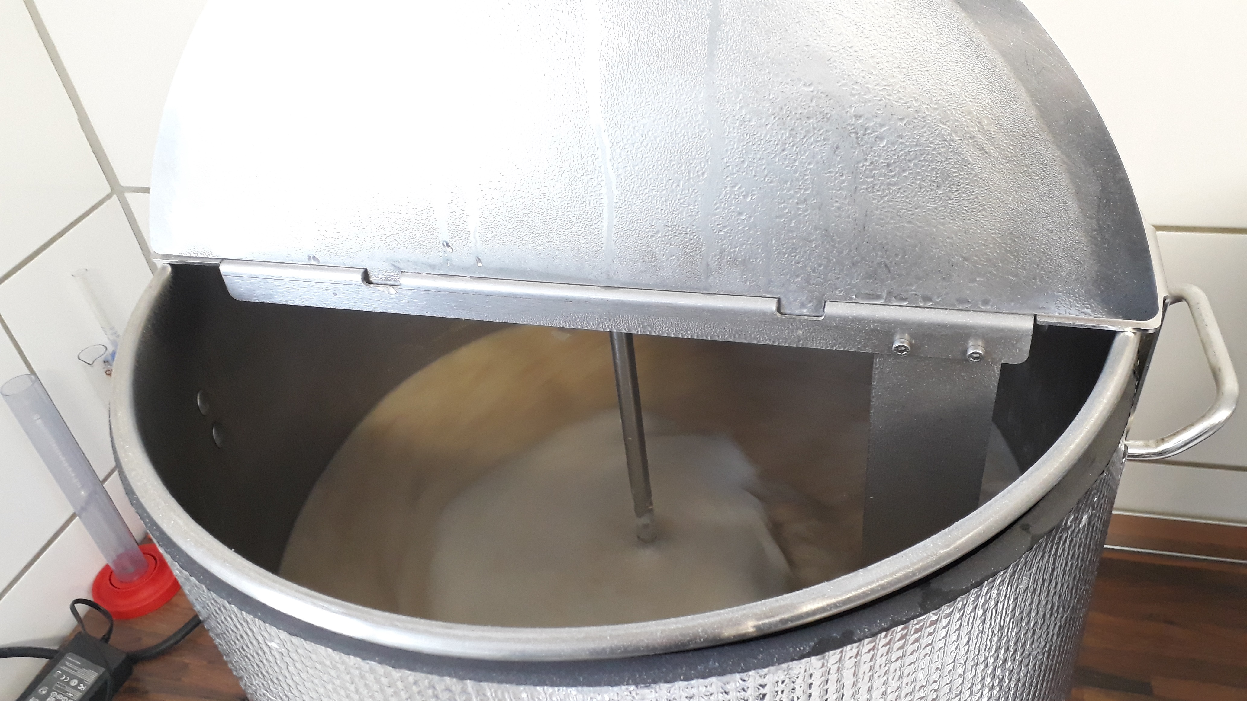 Hmm. 50°C Einmaischtemperatur hätten es sein sollen. Irgendwo stimmte da was in der Berechnung nicht. Der KBH sagte mir 54°C bei Berücksichtigung von ca. 9KG Malz mit 12,8°C ergeben 50°C. Nun sind es 52°. Das ist nicht das erste Mal. Ich muss das definitiv mal unter die Lupe nehmen. Da nun eh direkt auf 63°C hochgeheizt wird, hoffentlich keine große Änderung am fertigen Bier.