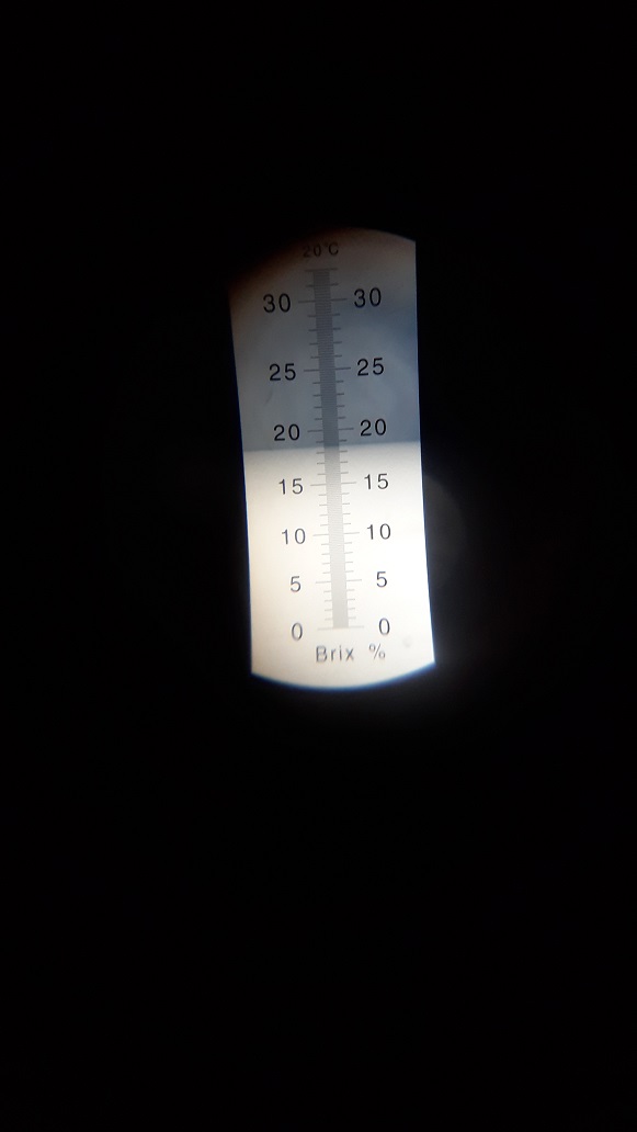 Hier sieht man es zwar undeutlich, aber bei mir waren es genau 11,8brix und mit der Spindel 11,5°P. Eine schöne Punktlandung und 43l im Gärfass. Hier gibts keine Bilder vom Abfüllen bzw. umschlauchen, ich war einfach etwas im Stress. Bin trotzdem immer wieder erstaunt, wieviel von fast 60l nun nur noch übrig sind.