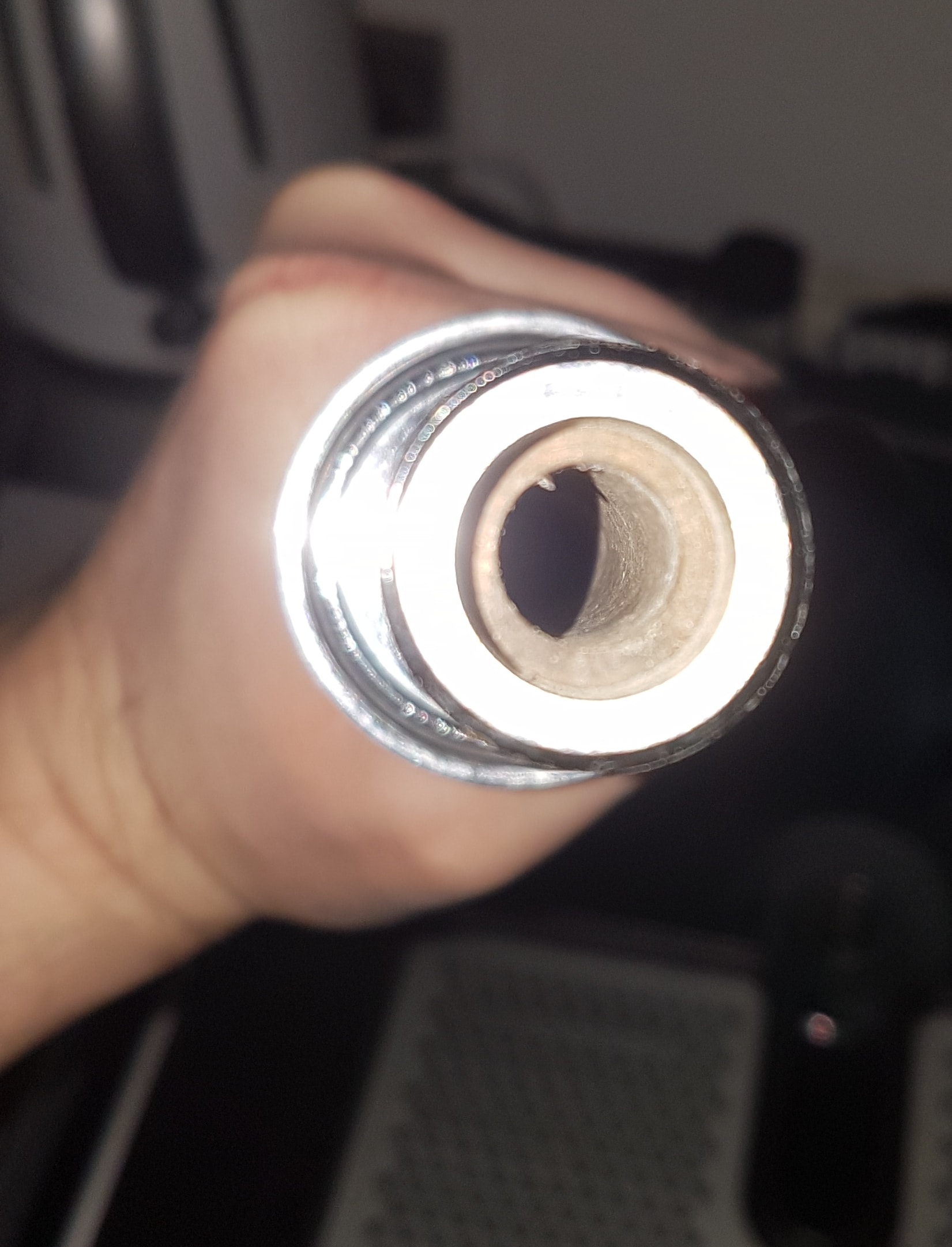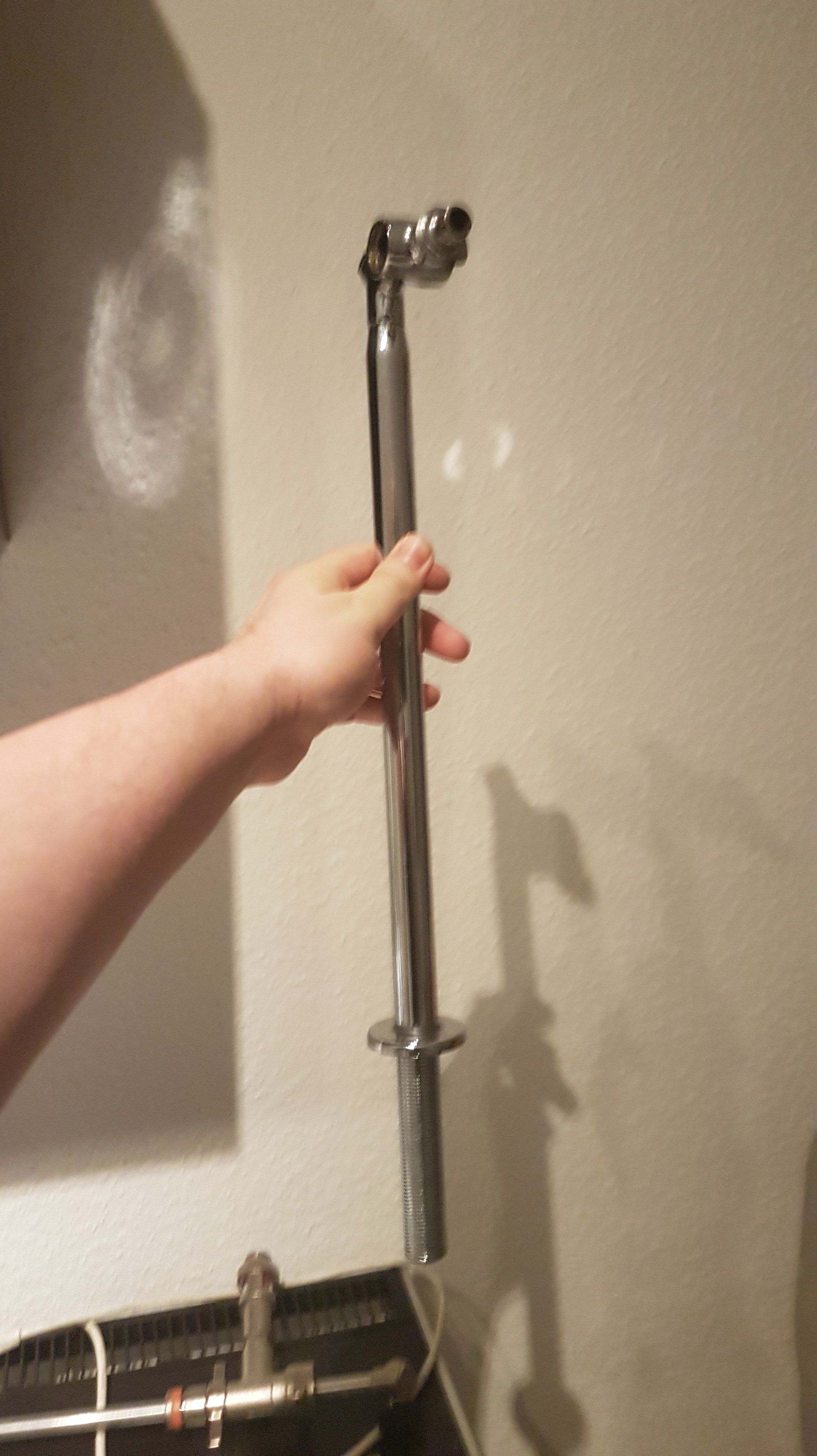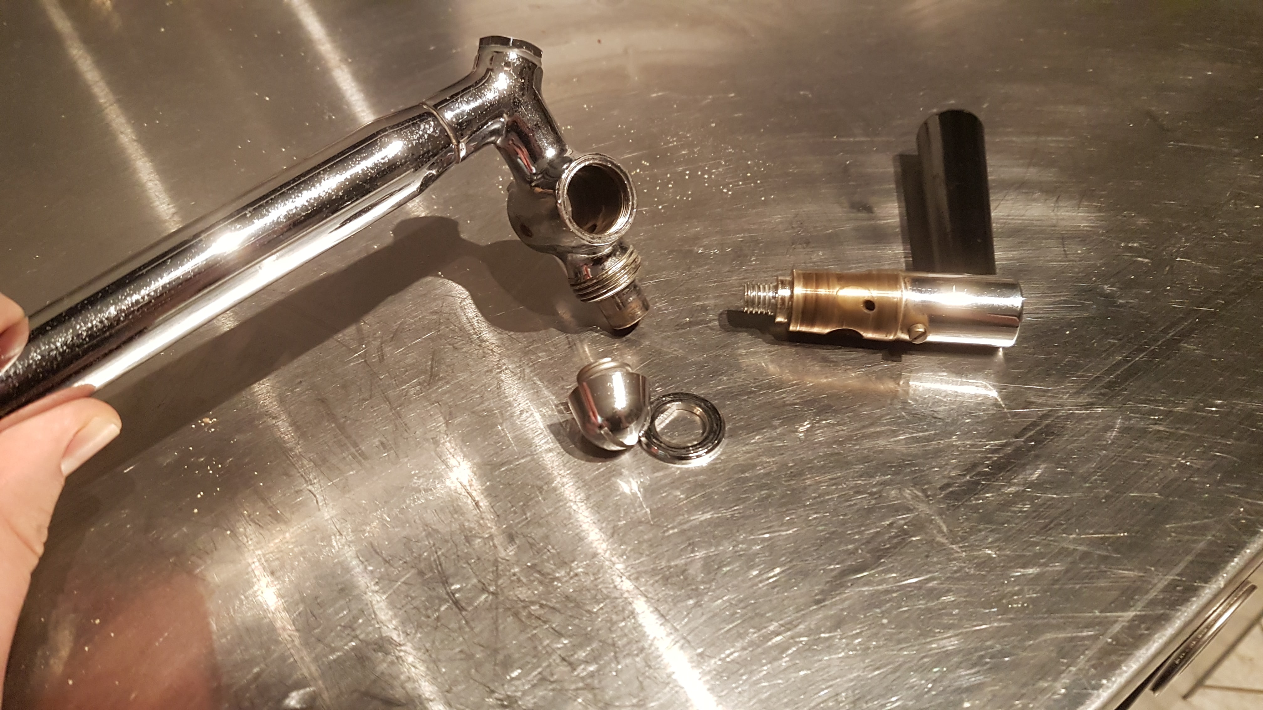 Oben auf der anderen Seite vom Winkelstück scheint ja auch noch ein Gewinde zu sein. Hast Du das mal aufgeschraubt?