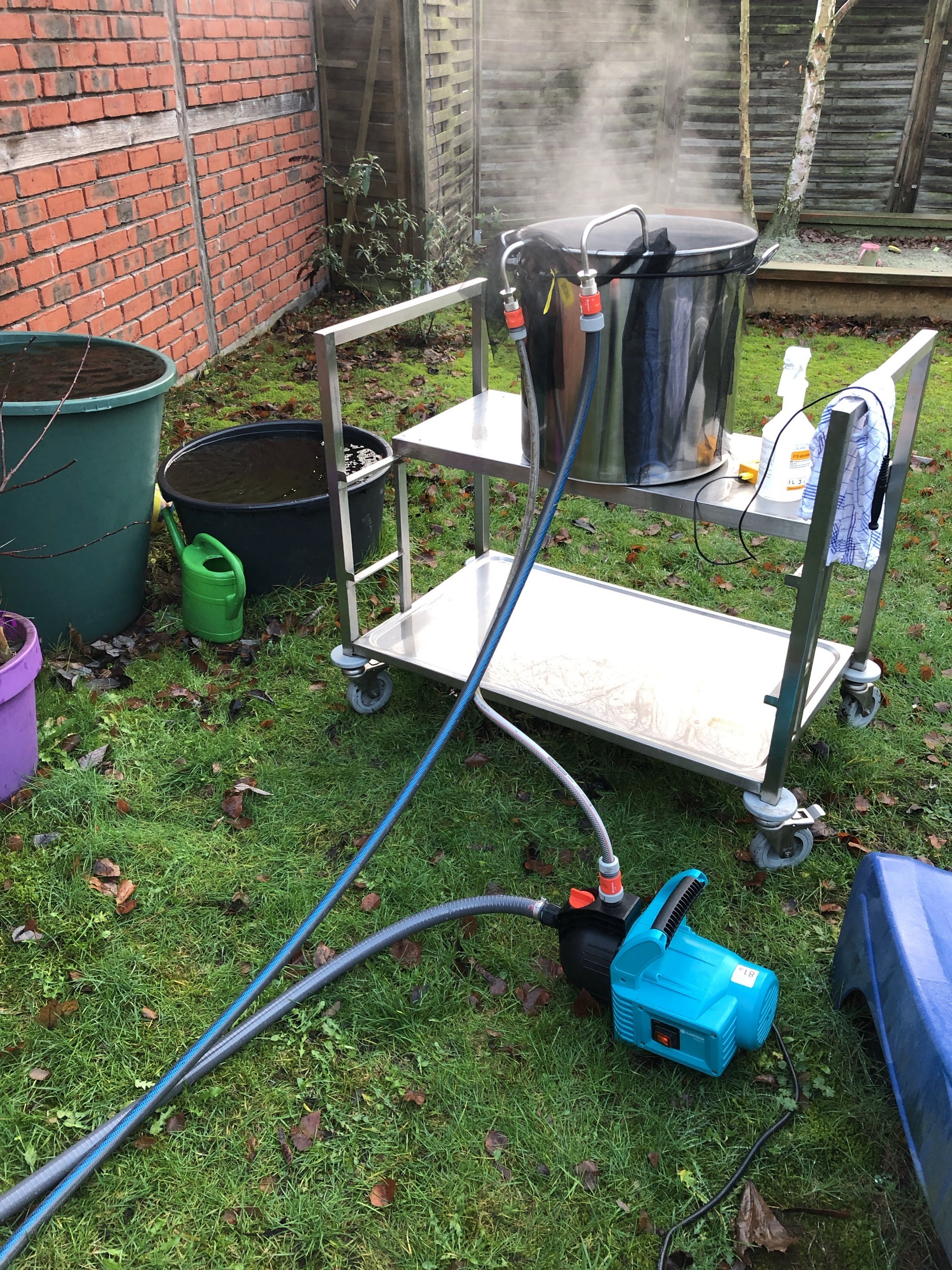 da muss ich mein Rezept und meine Anlage noch etwas besser anpassen Nachdem ich mit heißem Wasser auf meine Zielstammwürze eingestellt hatte, kommt