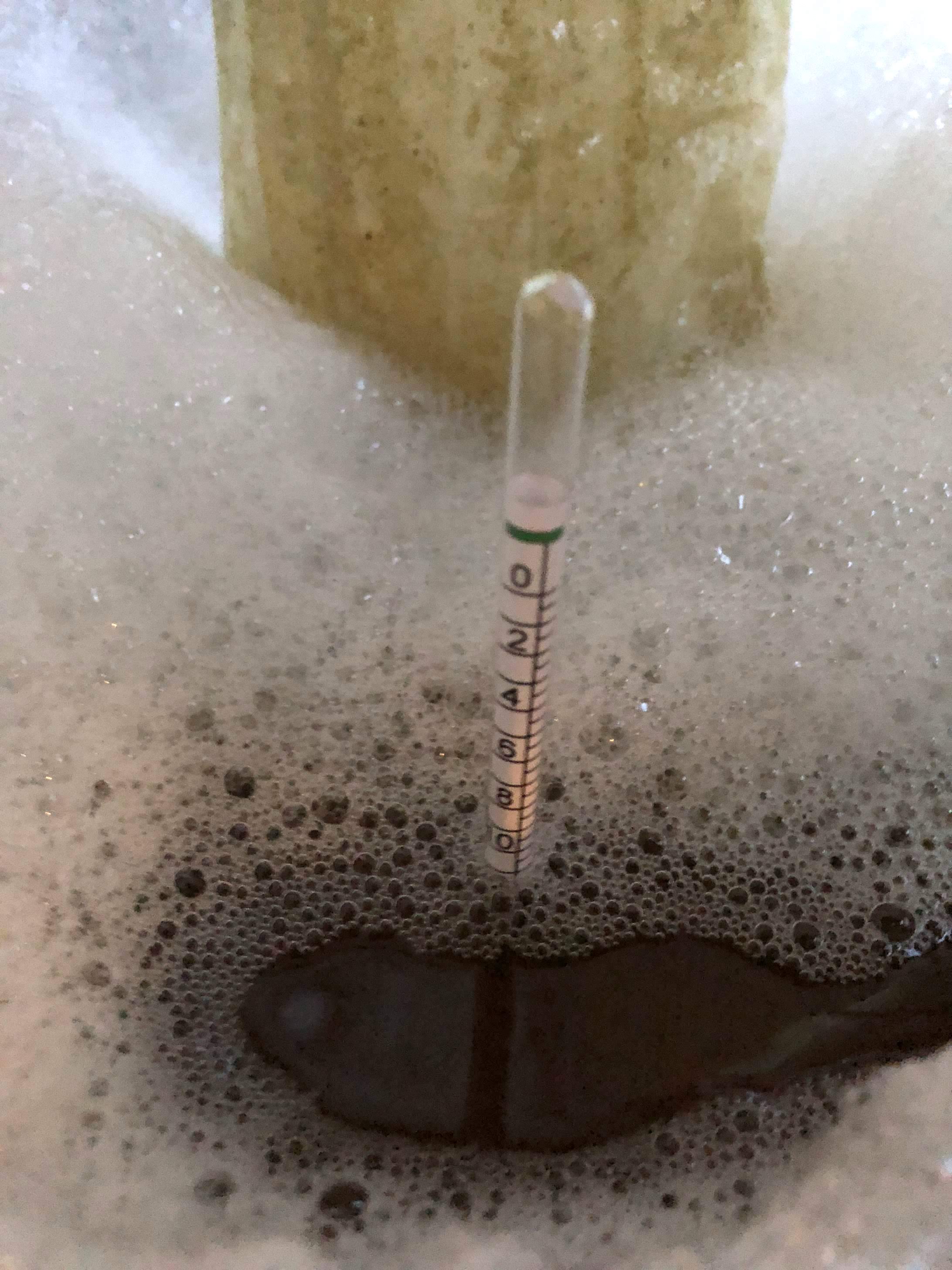die als Kühlwasser-Spender dienen. Das funktioniert relativ zufriedenstellend Während der Abkühl-Aktion mache ich den Gäreimer startklar... Bereite die Hefe vor, ja ich weiß, aber die schmeckt mir immer noch mit am Besten.. Die Würze hatte nach ca. 25 Minuten 15 Grad Temperatur erreicht, Zeit für das Abseihen Nochmal mit der Spindel prüfen, ob das alles so richtig ist Dann Hefe rein, Deckel zu und rein geschlurt.. Steht jetzt bei 17 Grad Raumtemperatur Ach ja, Brau-Ende war gegen 17/17:30 Uhr Uhr, inkl. Reinigung - also alles ganz gemütlich!