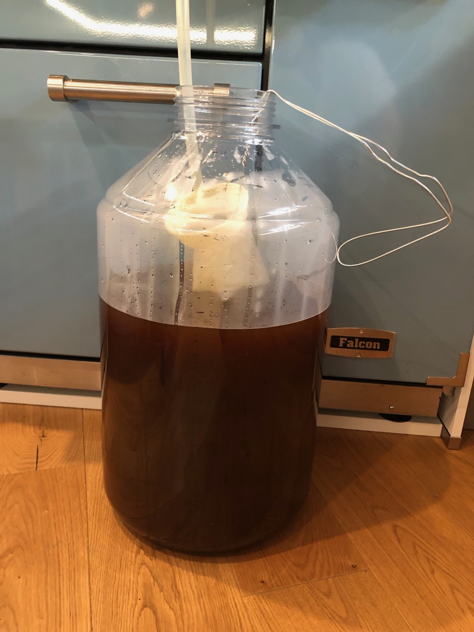 Nach dem Abkühlen konnte ich dann die zweite Stufe pitchen. So wurden es dann knapp vier Liter im Bottich. Aufgeschüttelt sieht es dann so aus und darf nun über Nacht ordentlich arbeiten: