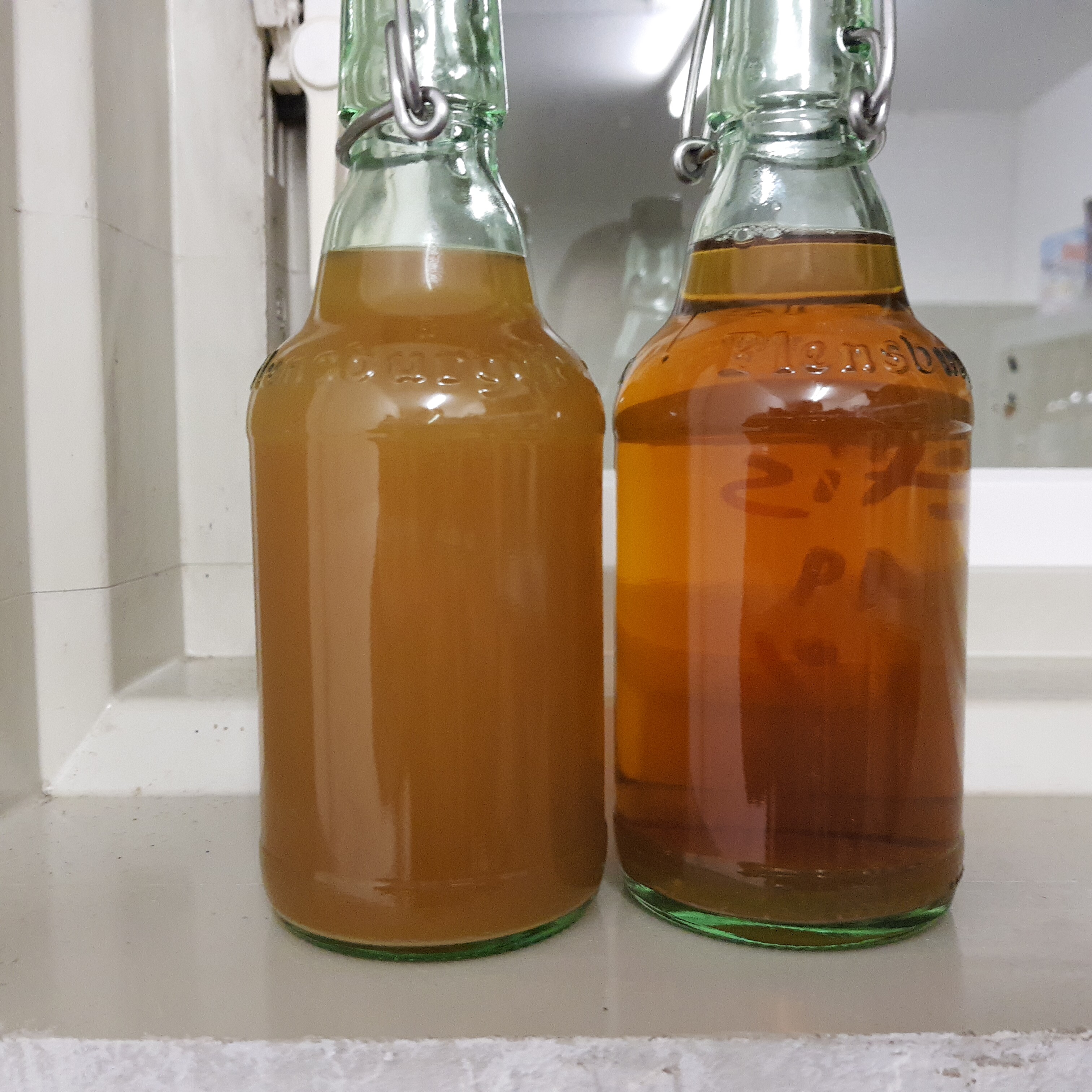Ohne Kohlensäure ist mein gebrautes im Moment dezent sauer,aber nicht stärker wie beim ersten Test, die erhoffte Banane ist auch kaum eruierbar - mit ordentlich Co2 dürfte aber durchaus noch ein frisches Weizen rauskommen.