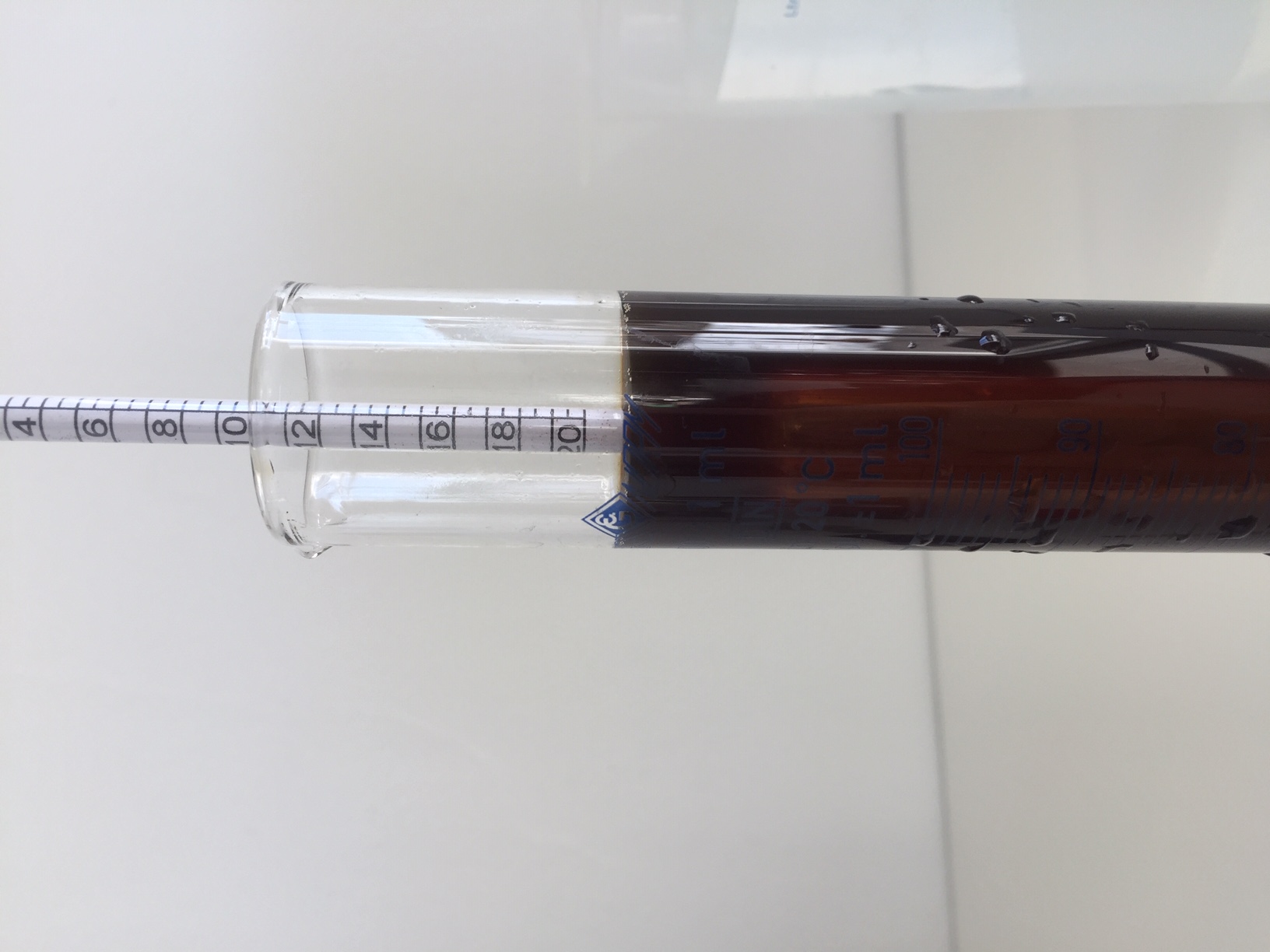 Verdünn die Würze für die Spindel zur Hälfte mit Wasser, dann kannst du die Stammwürze bestimmen.