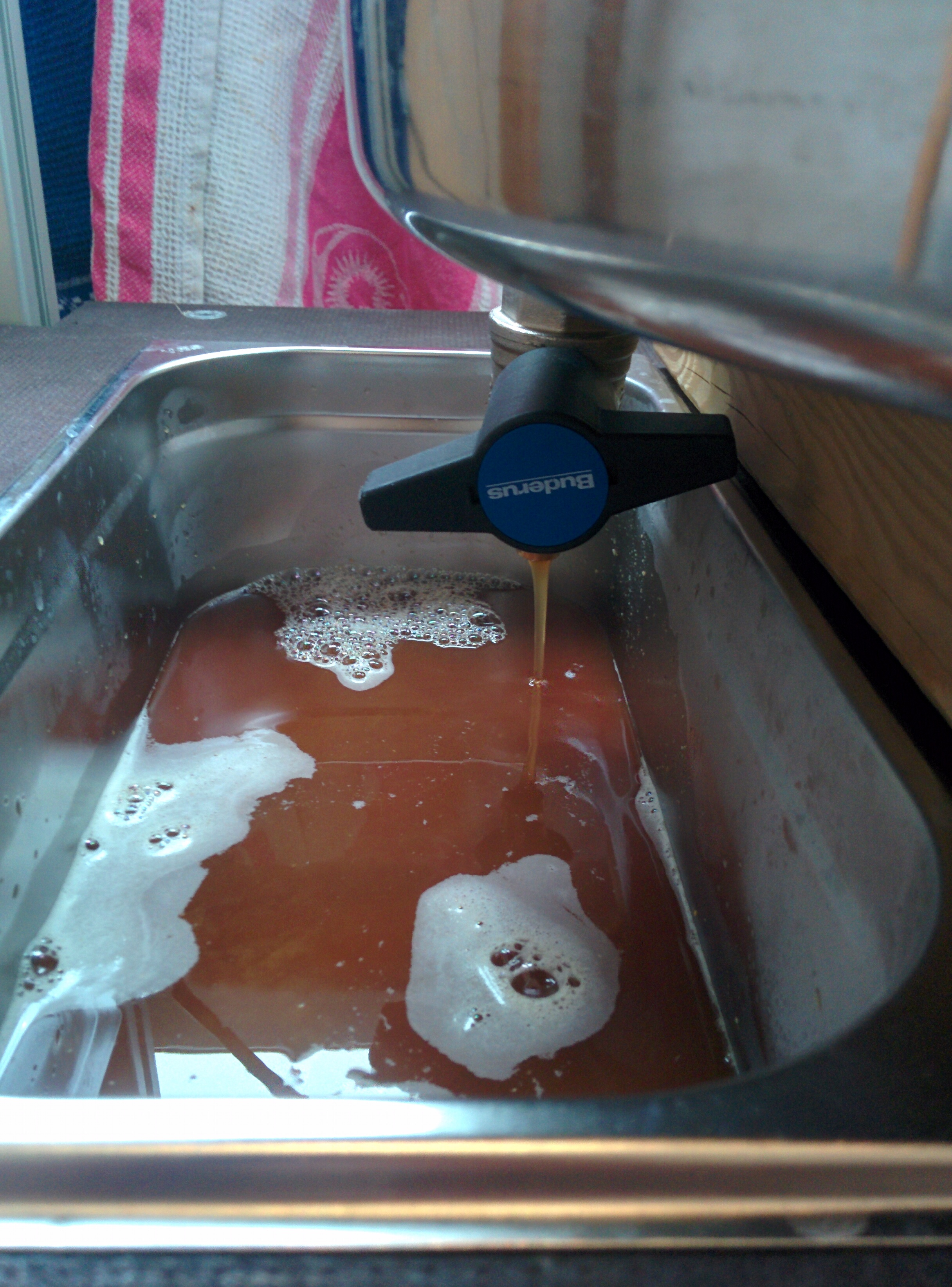 - Rohr zum Abmaischen (hier an einem Blech herunter fließen lassen, damit es nicht zu sehr plätschert)