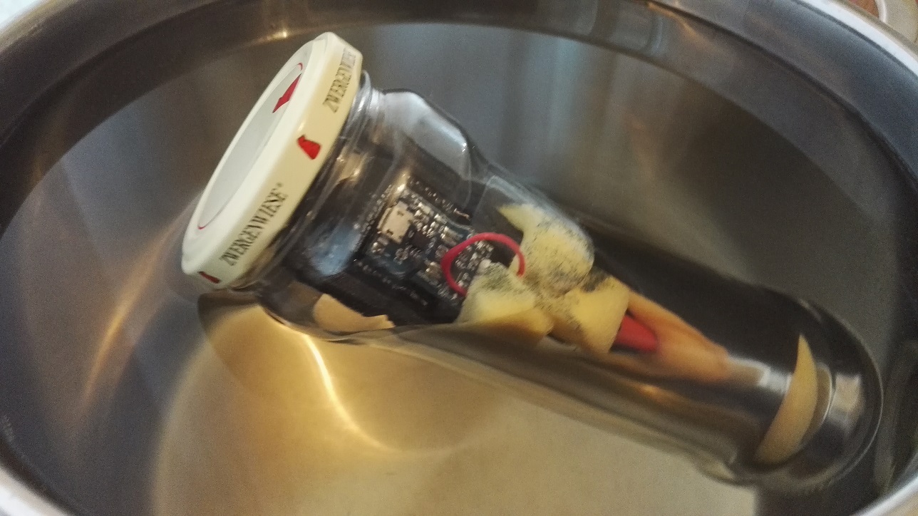 Um aber mal zu schauen, ob es prinzipiell funktioniert, habe ich die iSpindel mal in dem Spargelglas probiert (das gibt es so zumindest bei Aldi, Lidl und edeka offensichtlich das ganze Jahr über, und kostet überall 99cent - das ist zwar auch interessant, aber ein anderes Thema).