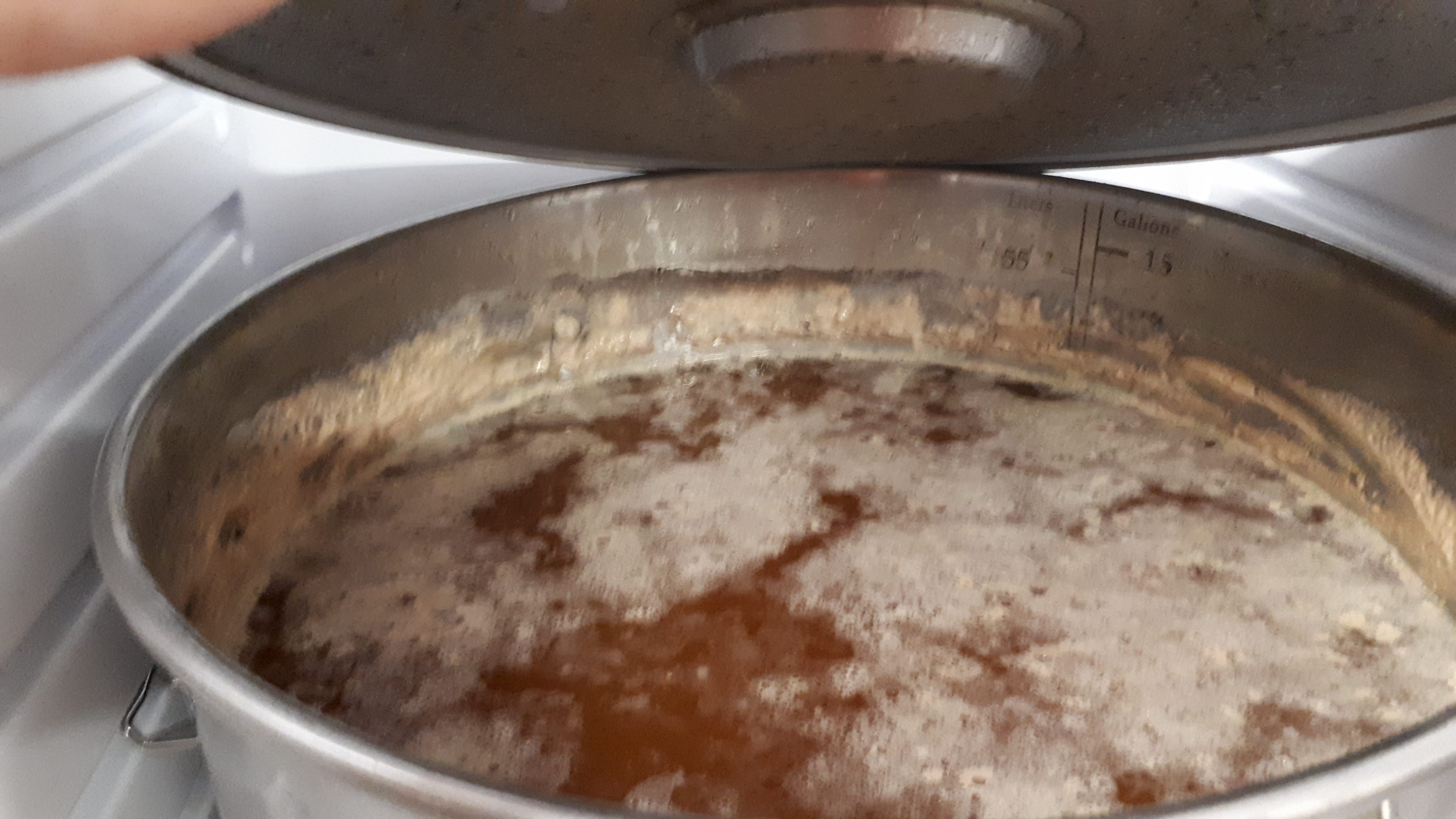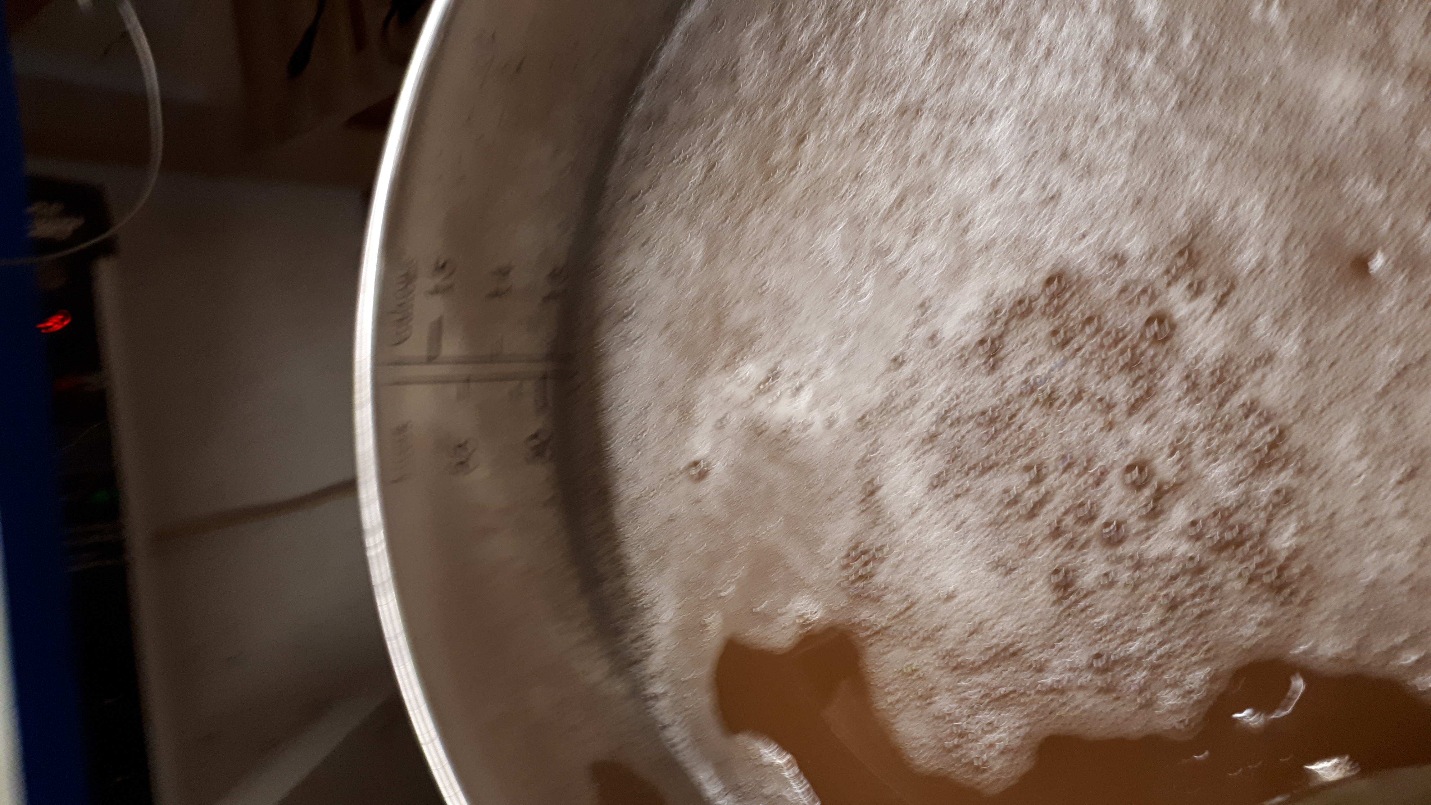 Ich habe dann weiter gekühlt auf ca. 20°C, nebenbei 3 Päckchen Trockenhefe nach Anleitung rehydriert und ohne Whirlpool in den Gärbehälter abgelassen. Gefiltert wurde nur mit einem Monofilamentfilter, der gan klar an seine Kapazitätsgrenze gekommen ist.