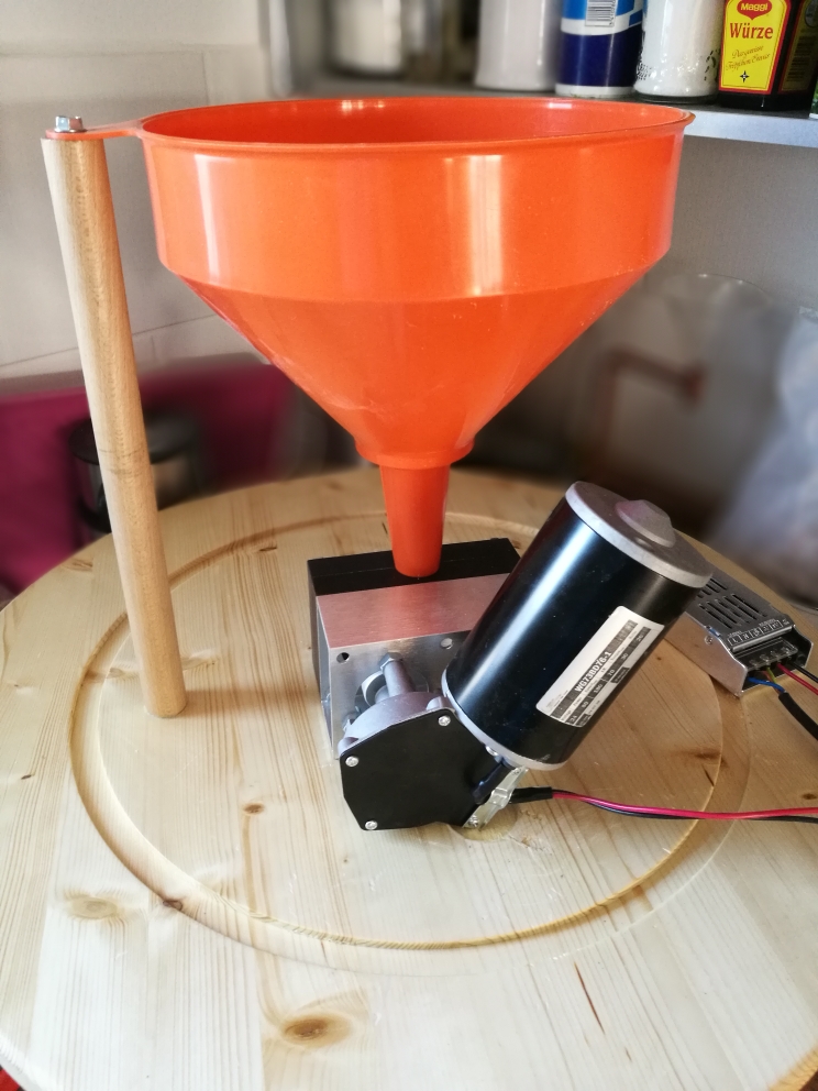 Es gibt übrigens bei HuM inzwischen einen sehr ordentlichen und robusten ca 6L fassenden Edelstahltrichter für die Student. (leider ohne Anpassung bisher nur an Students ohne das Antriebs-, Motorkit passend)